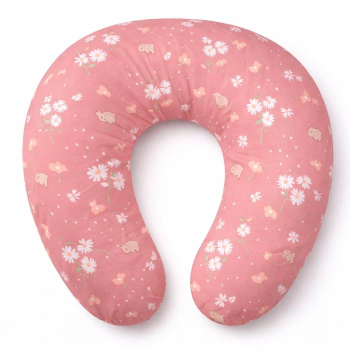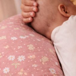 Ammepuden måler 73x53x10 cm og giver god plads og stabil støtte omkring kroppen. Den er fyldt med blødt polyester fiberfyld, som former sig behageligt og hjælper med at aflaste arme, skuldre, nakke og lænd. Det skaber en mere afslappet og korrekt ammestilling - både ved bryst og flaske.