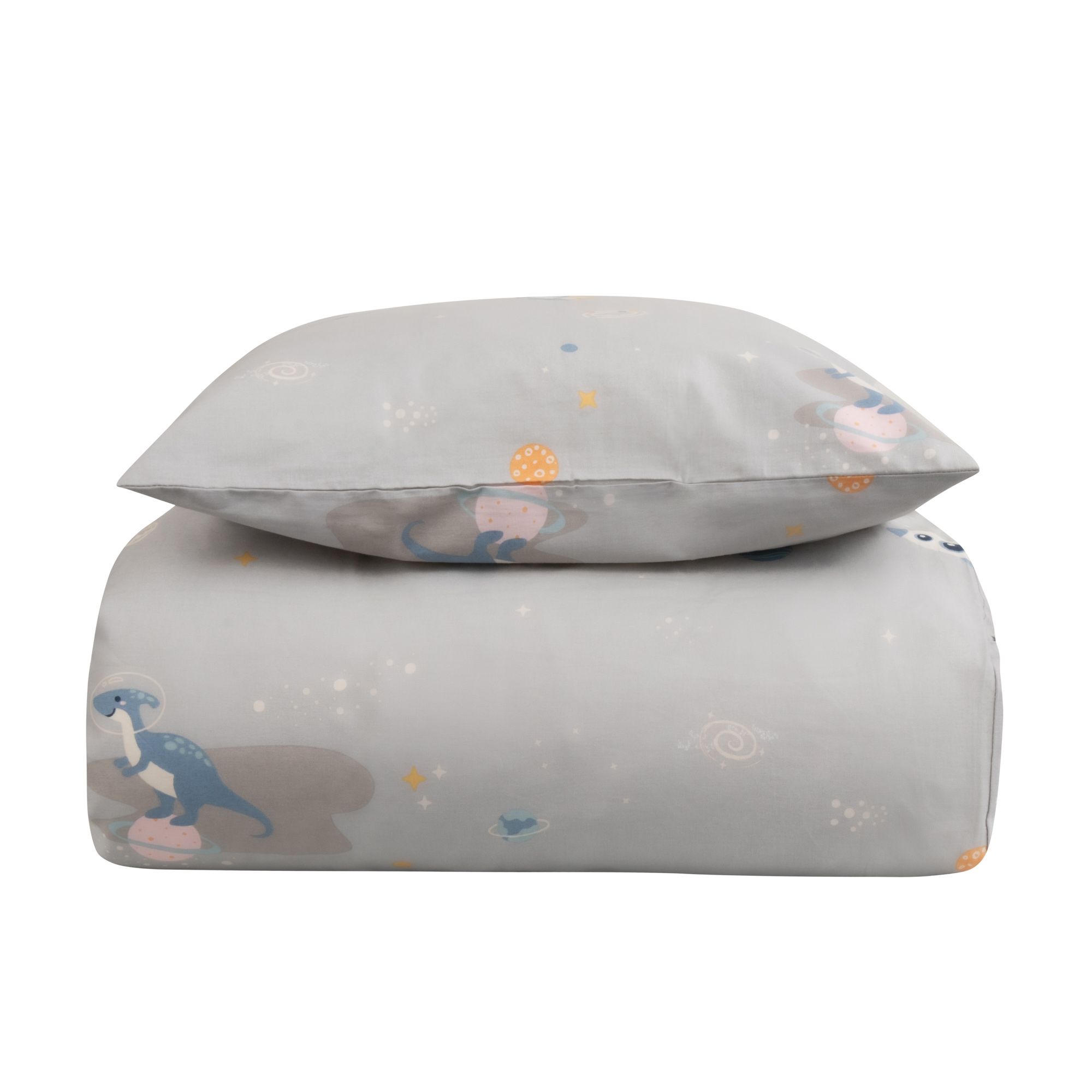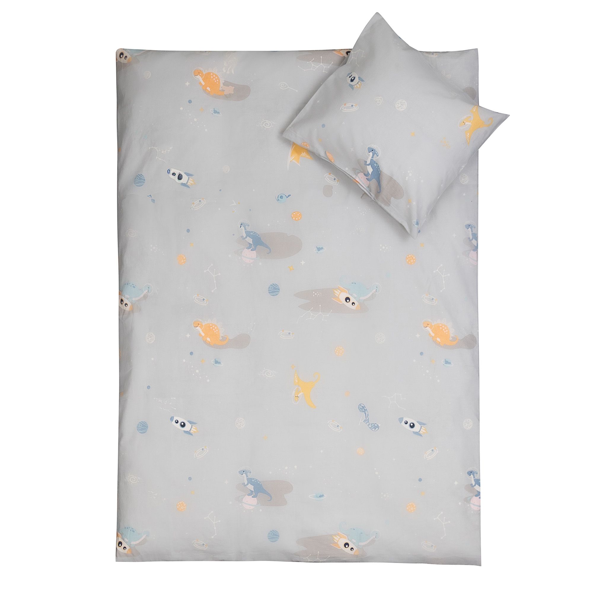 Baby sengetøj 70x100 cm - Gråt baby sengesæt med rum dinosaur - 100% blød bomulds sengelinned - Nordstrand Home
