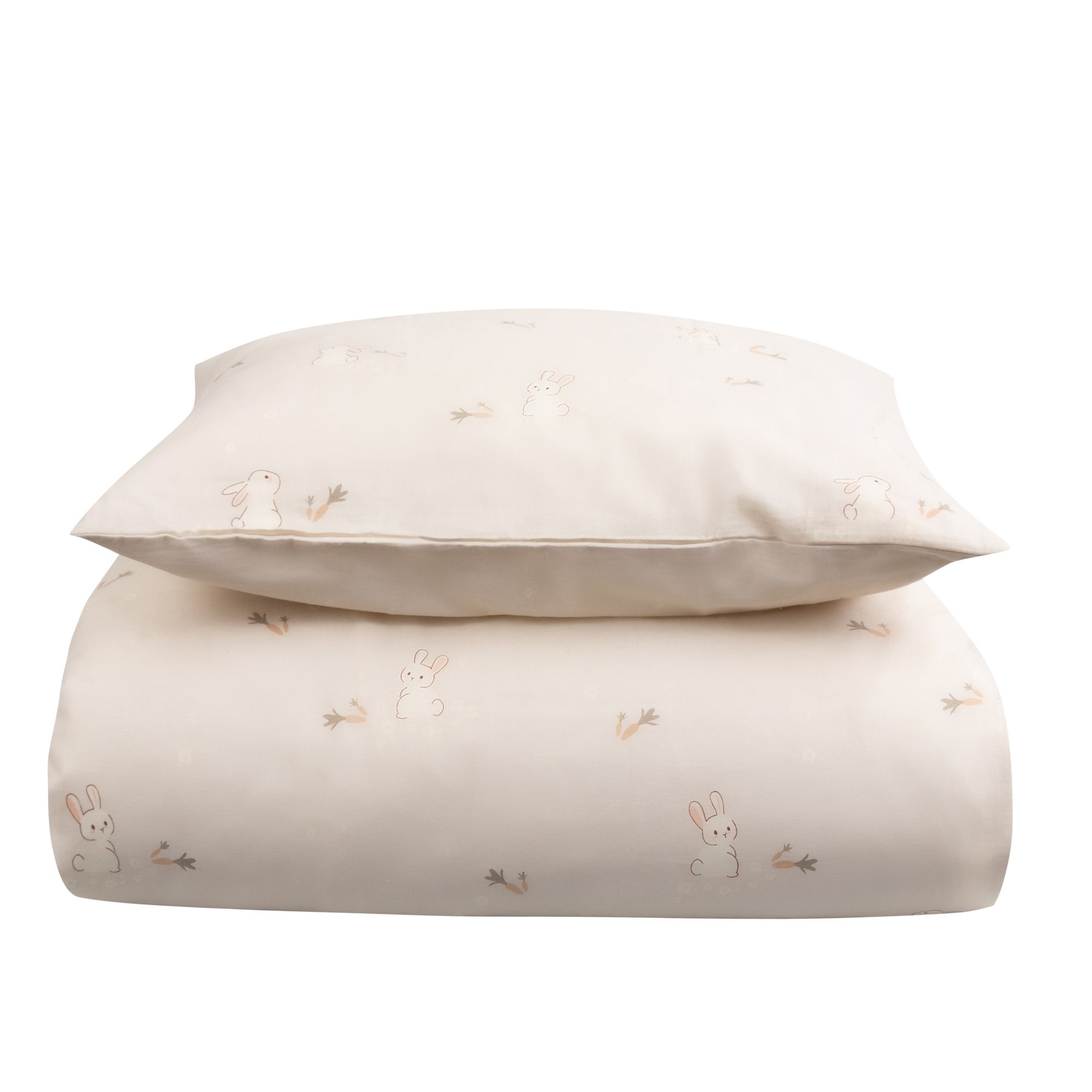 Baby sengetøj 70x100 cm - Beige baby sengesæt med kaniner - 100% blød bomulds sengelinned - Nordstrand Home