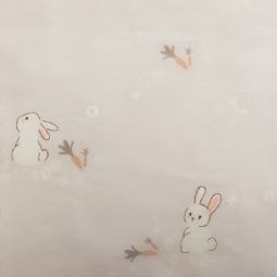 Blødt baby sengetøj i 100% bomuld, med et sødt design af kaniner i en rolig farve. Produceret med lette og åndbare bomuldsfibre giver sengesættet en følelse af blødhed, der er en dejlig tilføjelse til baby dynen. Det søde design med kaniner findes både som sengerand, baby nest, baby sengetøj, puslepude og ammepude. Du kan derfor let skabe genkendelige, hyggelige og ikke mindst matchende omgivelser til det nye familiemedlem.