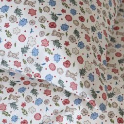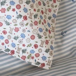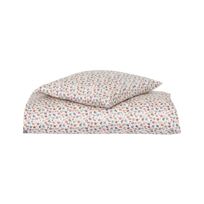 Dette fine baby sengesæt har et sødt og detaljerigt mønster med små blomster i forskellige farver. De mange små blomster giver sengesættet et livligt og hyggeligt udtryk, som passer perfekt til et børneværelse med bløde og naturlige farver.