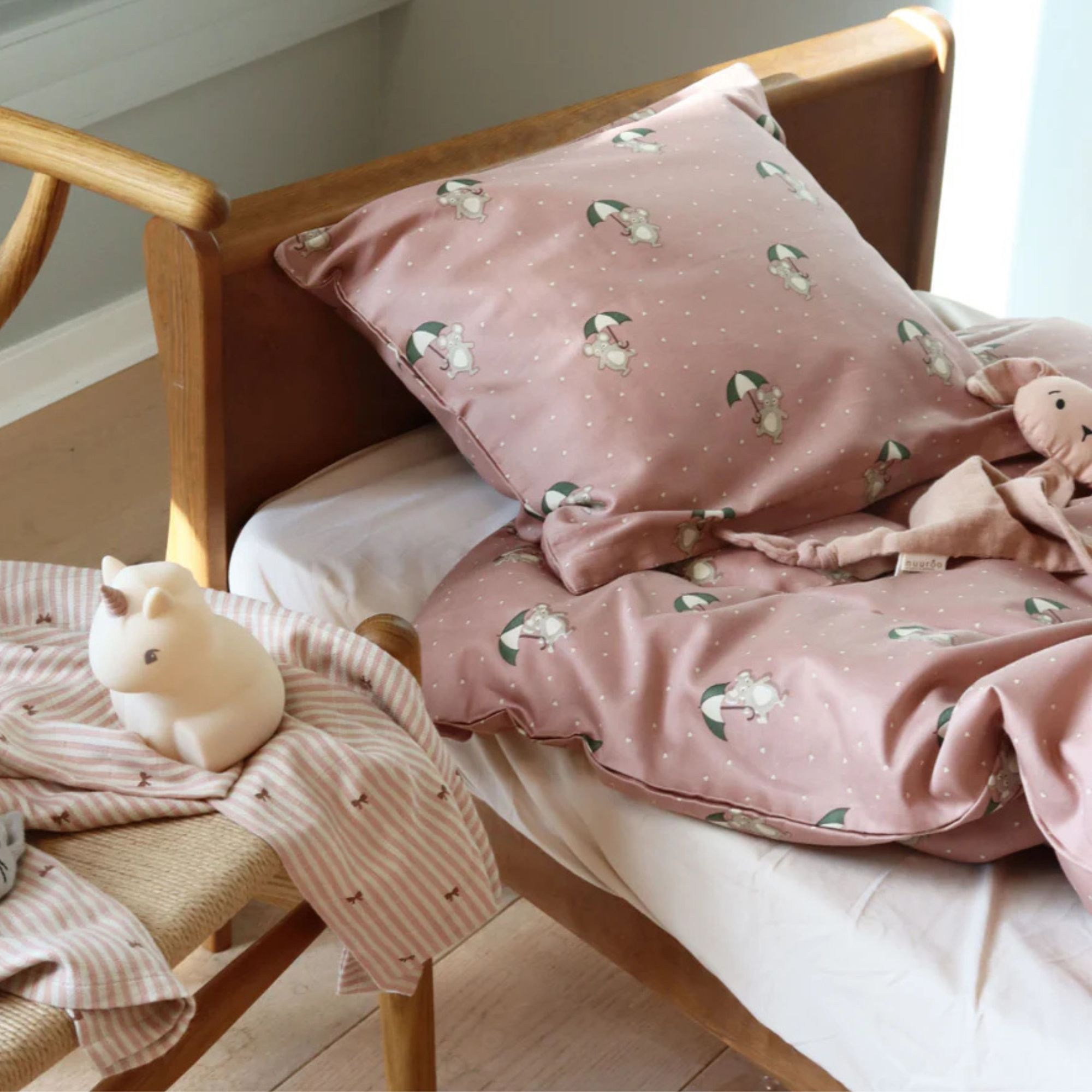 Baby sengetøj 70x100 cm - 100% økologisk bomuldssatin - Mus med paraply