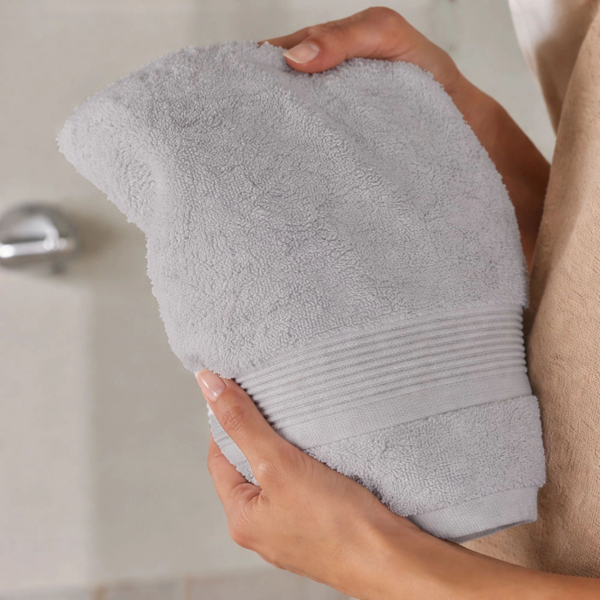 Vi anbefaler altid, at helt nye håndklæder lægges i blød i koldt vand før første vask - Således forbedre du håndklædernes absorberingsevne. Derudover kan håndklæderne med fordel tørretumbles for at bevare deres fylde og blødhed.