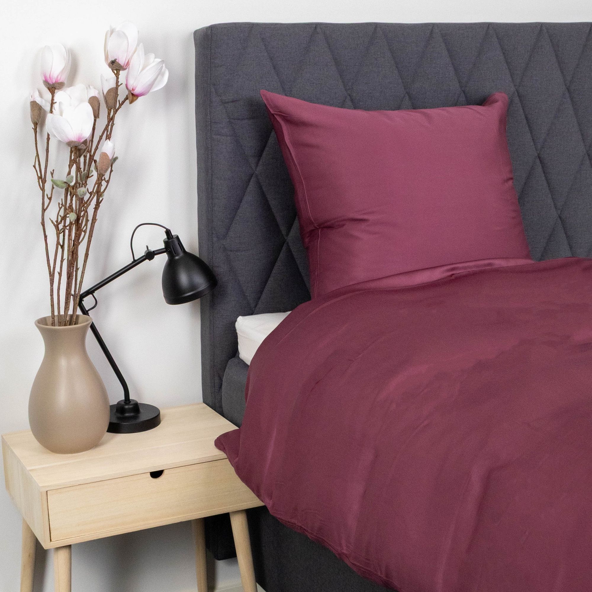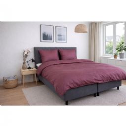 Det ensfarvede design i bordeaux giver et roligt, elegant og tidløst udtryk, der passer ind i enhver indretning. Dynebetrækket lukkes med lynlås, mens pudebetrækket har overlap, hvilket sikrer en pæn finish og god funktion i hverdagen.