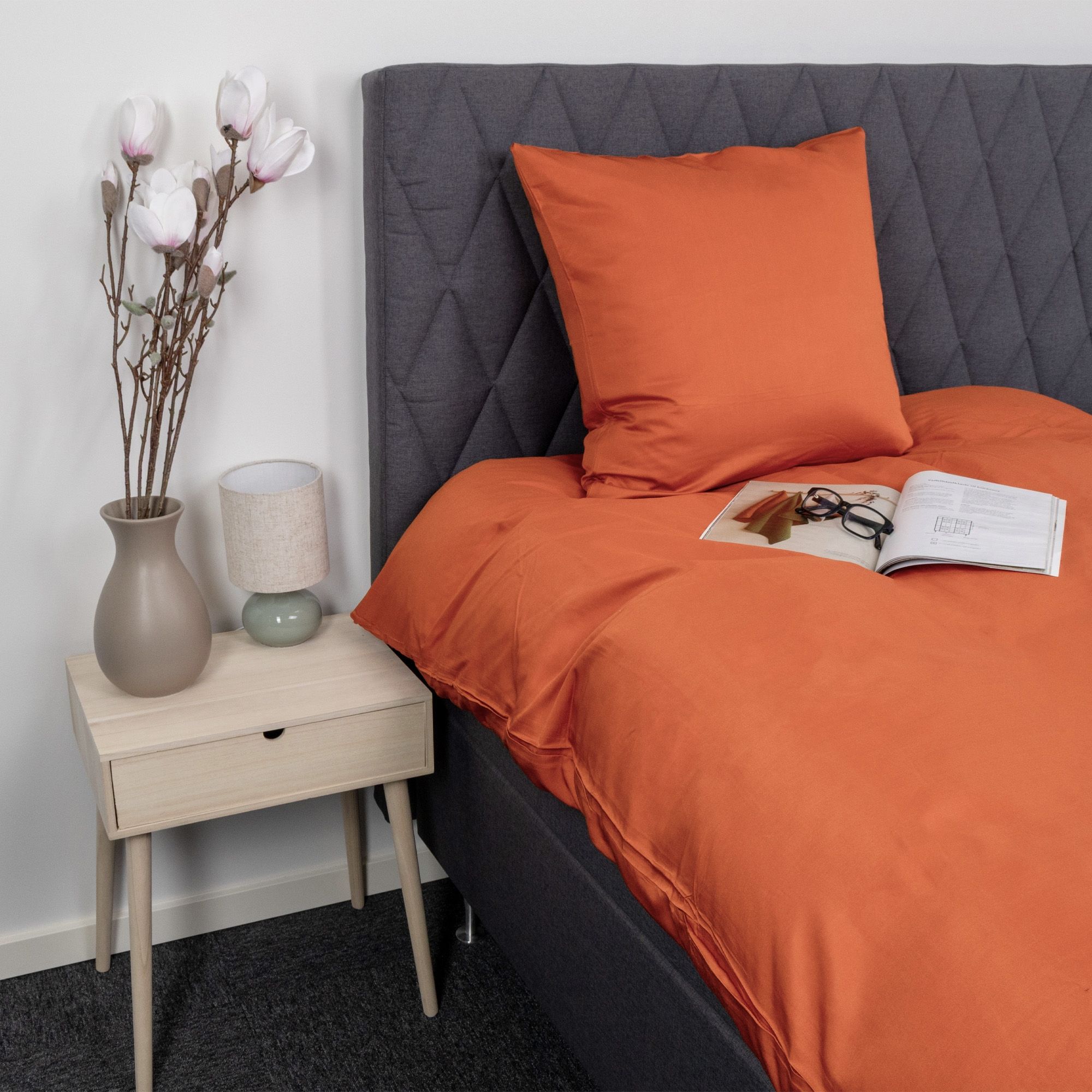 Bambus sengetøj - 100% Naturligt bambus - 140x200 cm - Orange, satinvævet sengesæt