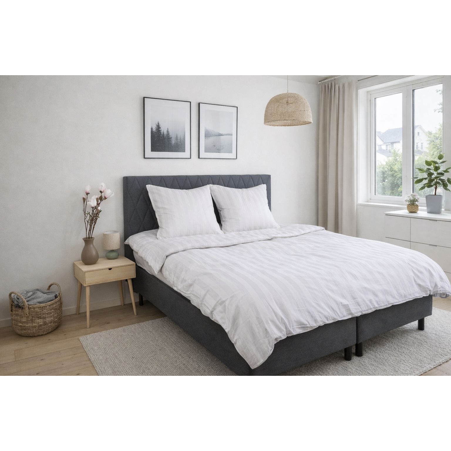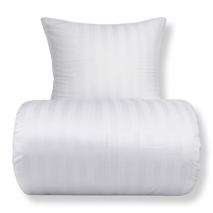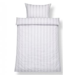Bambus sengetøj - 100% Naturligt bambus - 140x200 cm - Hvidt, jacquardvævet sengesæt med striber