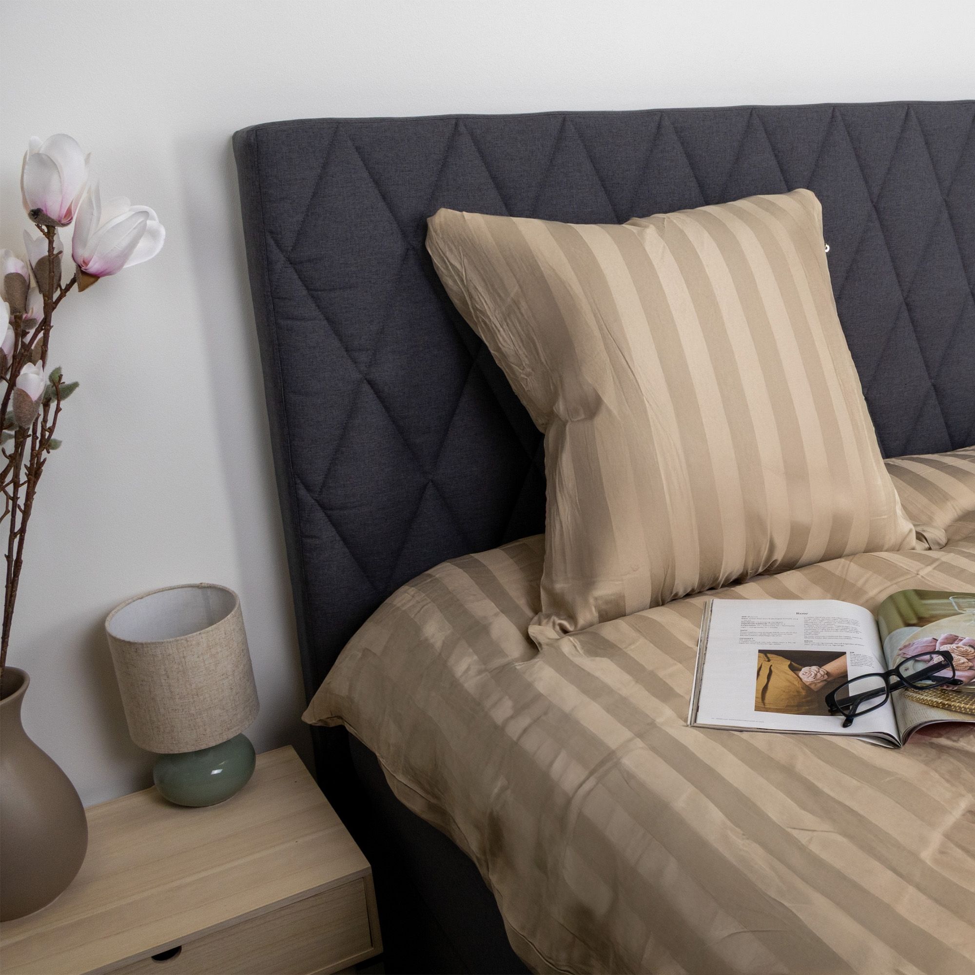 Forkæl dig selv med bambussengetøj fra Nordstrand Home – et sengesæt, med et elegant design og en blød fornemmelse. Det jacquardvævede stof med smalle, fine striber giver sengetøjet et eksklusivt udtryk, mens bambusfibrene giver en utrolig blødhed mod huden.