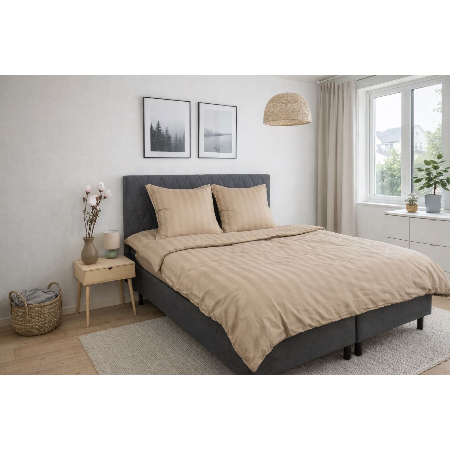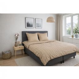 Bambus sengetøj - 100% Naturligt bambus - 140x200 cm - Sandfarvet, jacquardvævet sengesæt med striber