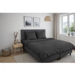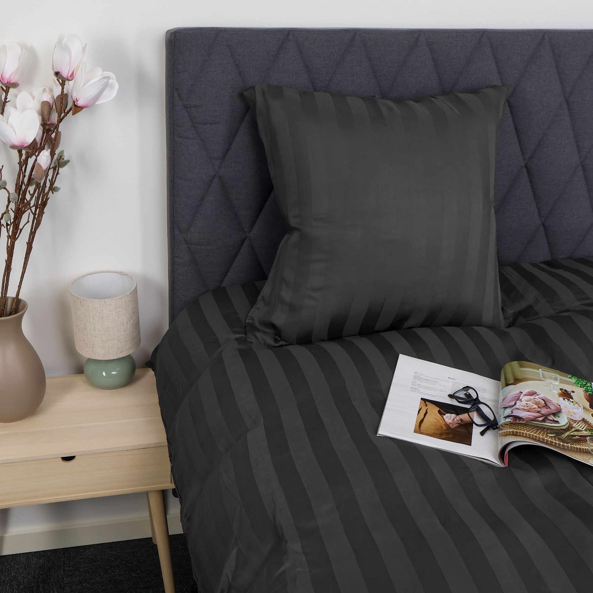 Bambus sengetøj - 100% Naturligt bambus - 140x200 cm - Gråt, jacquardvævet sengesæt med striber