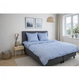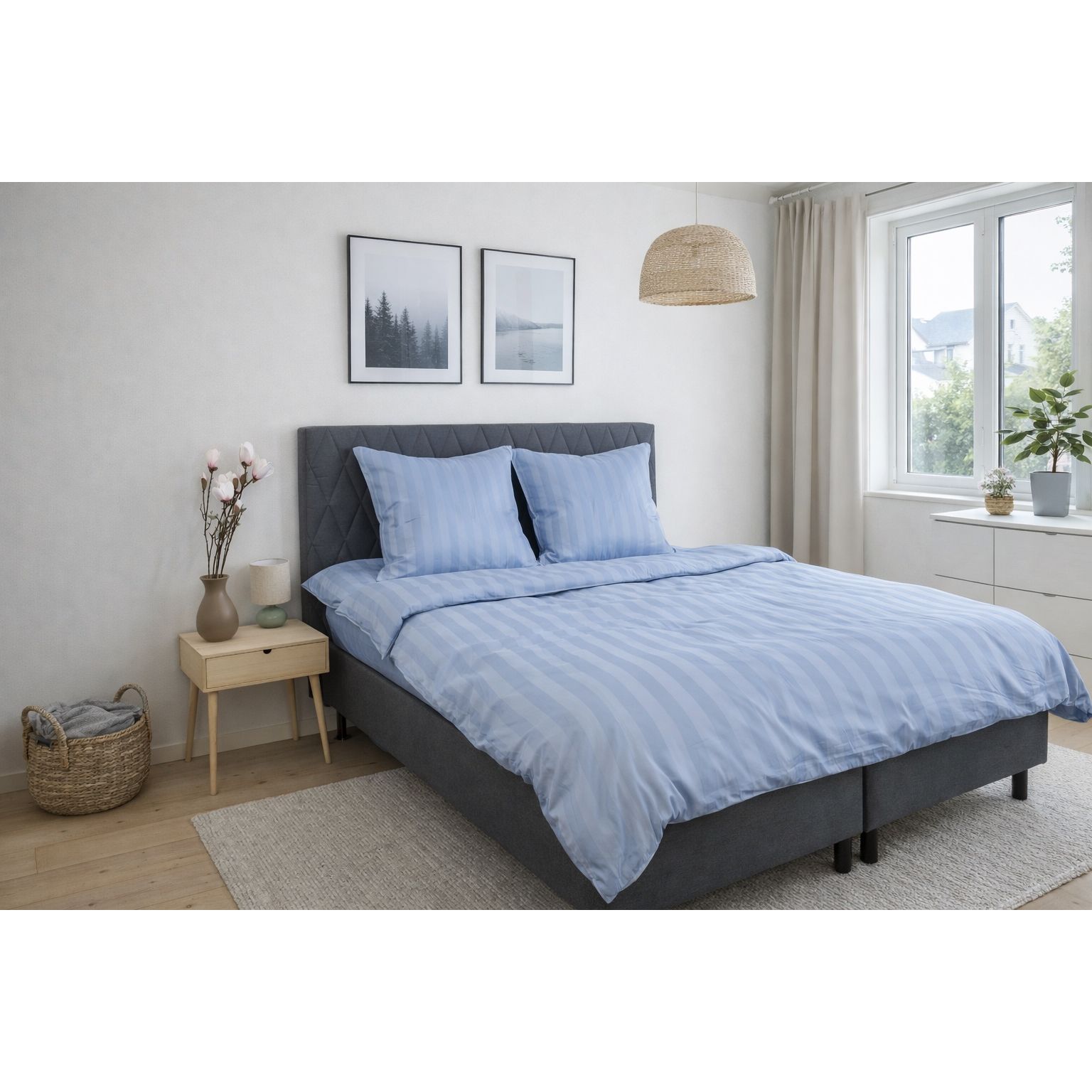 Bambus sengetøj - 100% Naturligt bambus - 140x200 cm - Blåt, jacquardvævet sengesæt med striber
