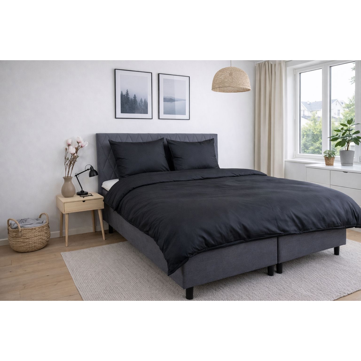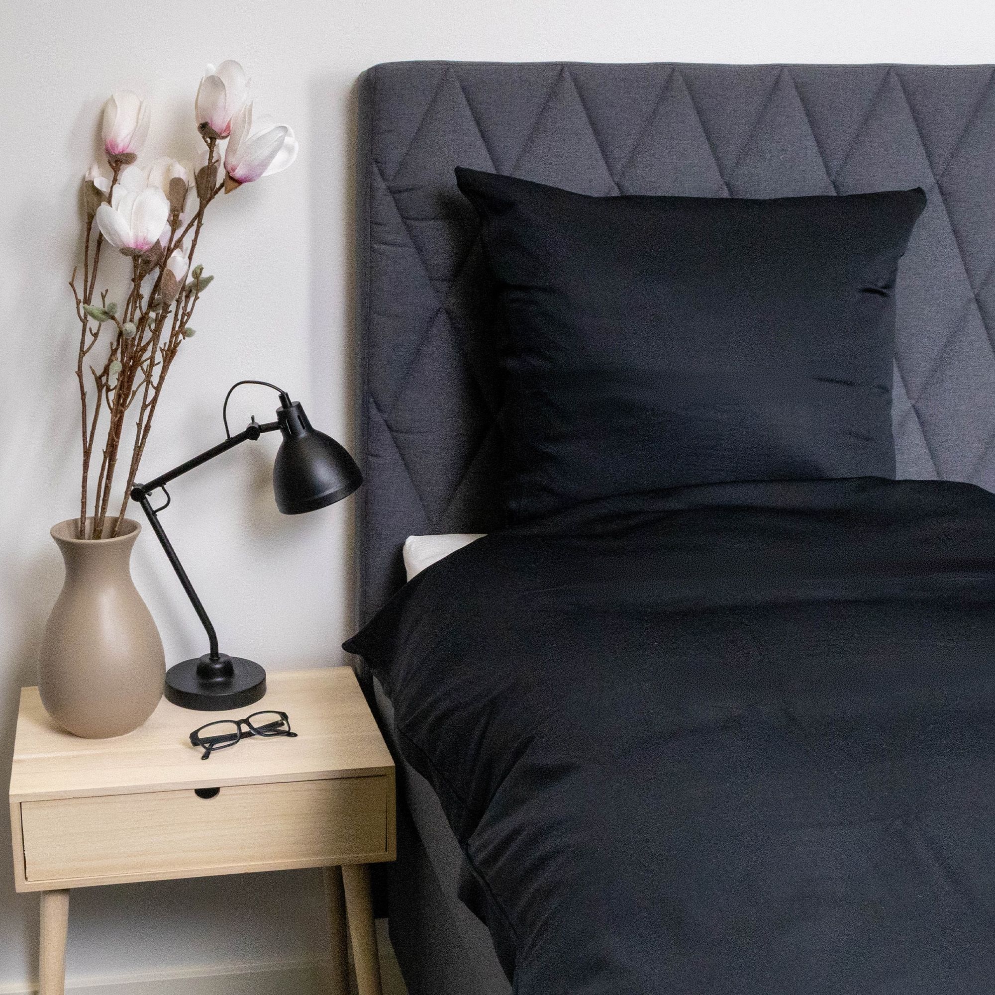 Det ensfarvede design i sort giver et roligt, elegant og tidløst udtryk, der passer ind i enhver indretning. Dynebetrækket lukkes med lynlås, mens pudebetrækket har overlap, hvilket sikrer en pæn finish og god funktion i hverdagen.