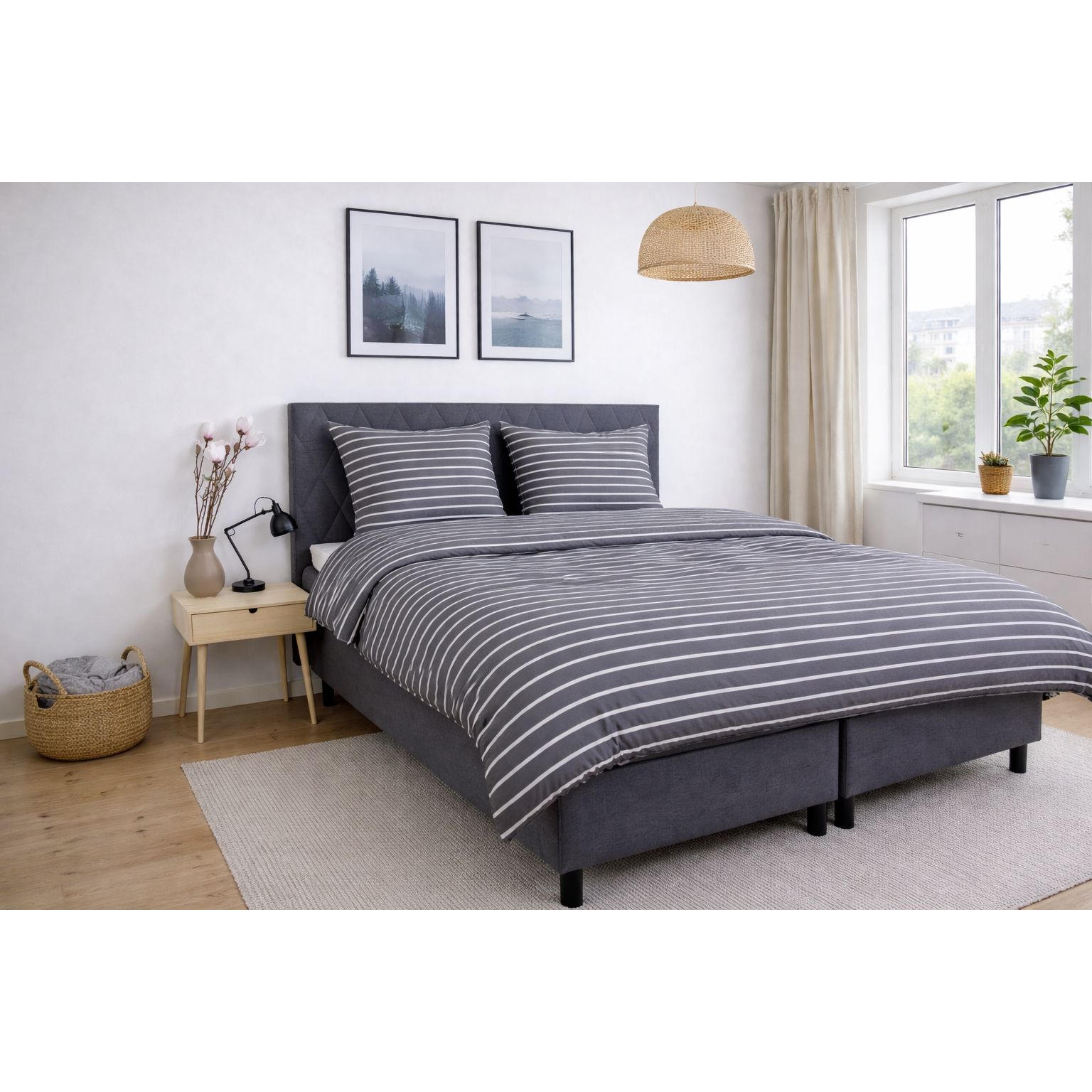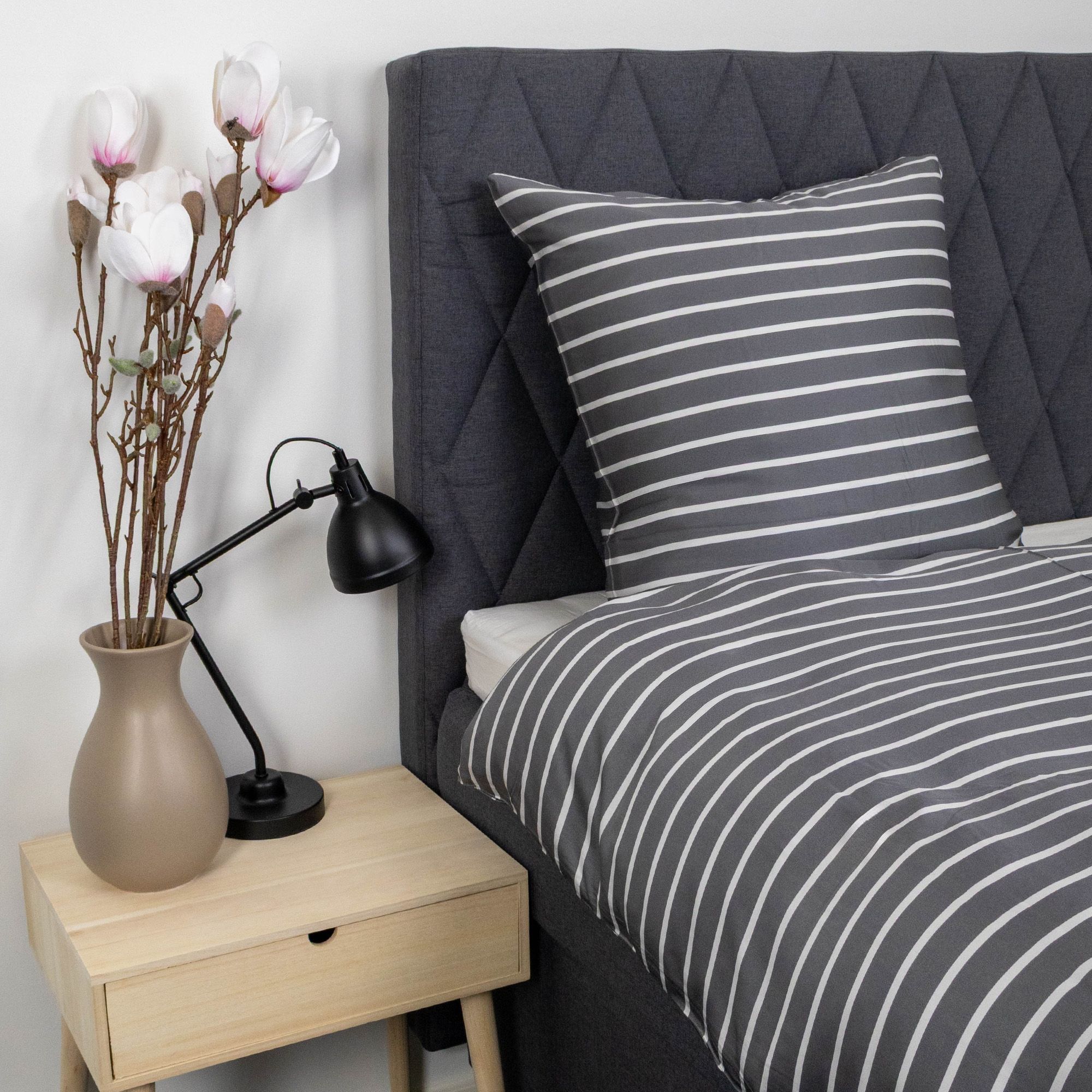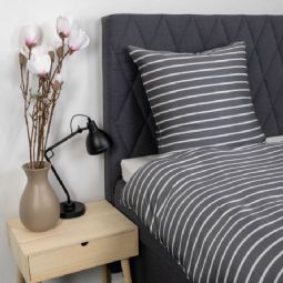 Bambus sengetøj med grå striber