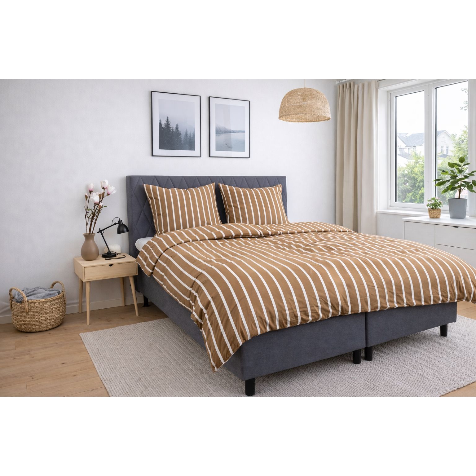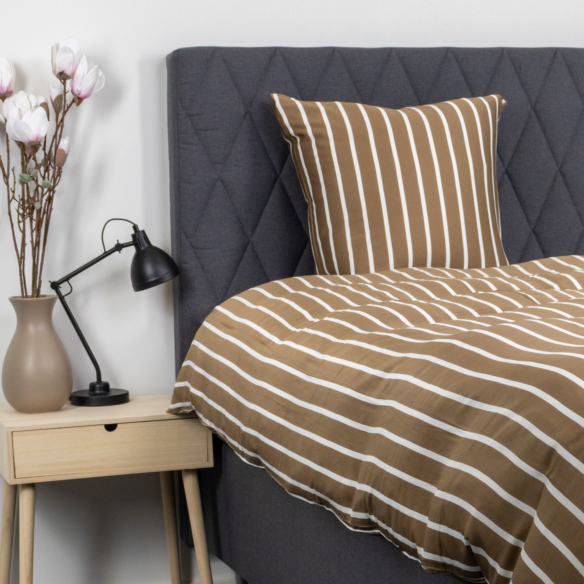 Bambus sengetøj 140x220 cm - 100% bambus - Beige stribet