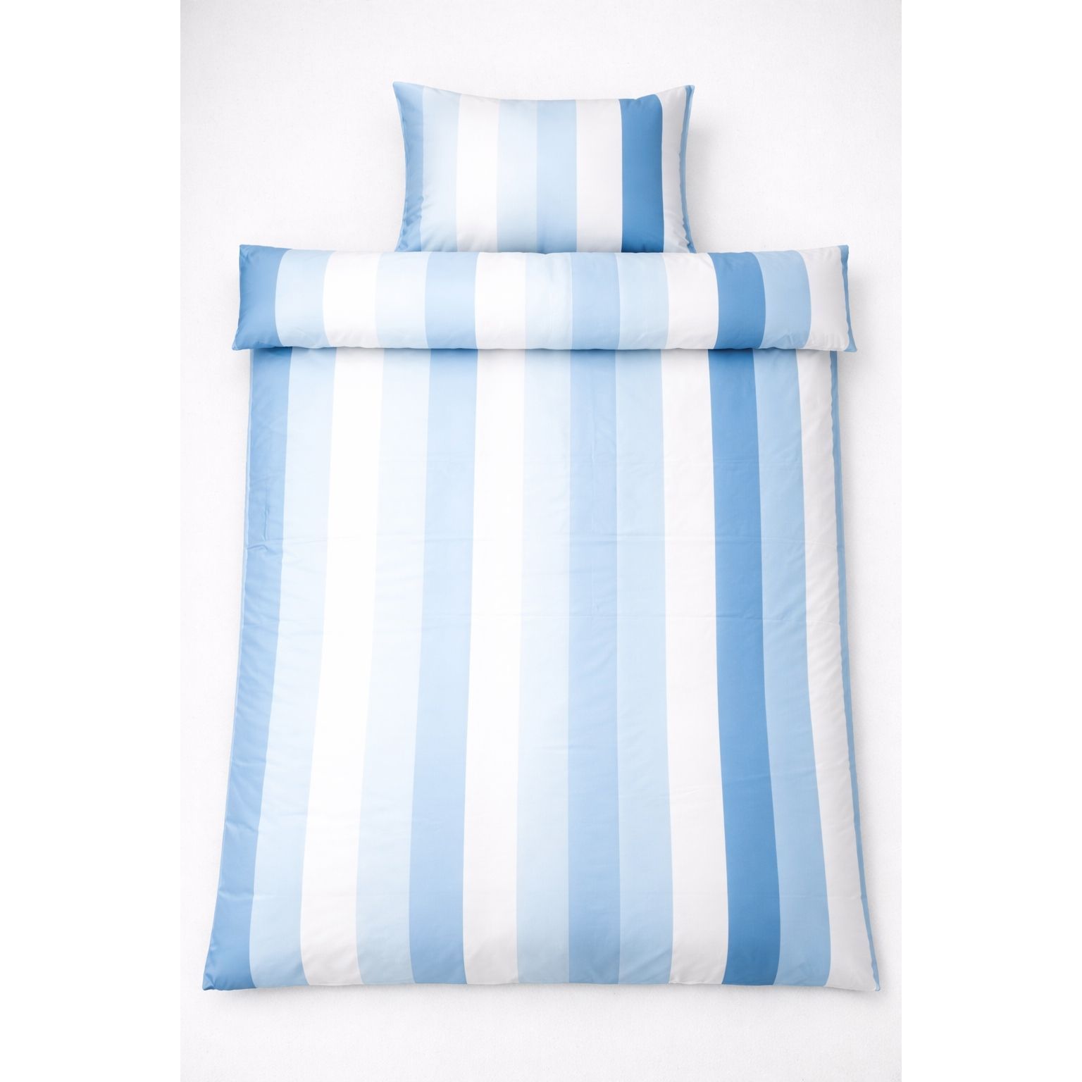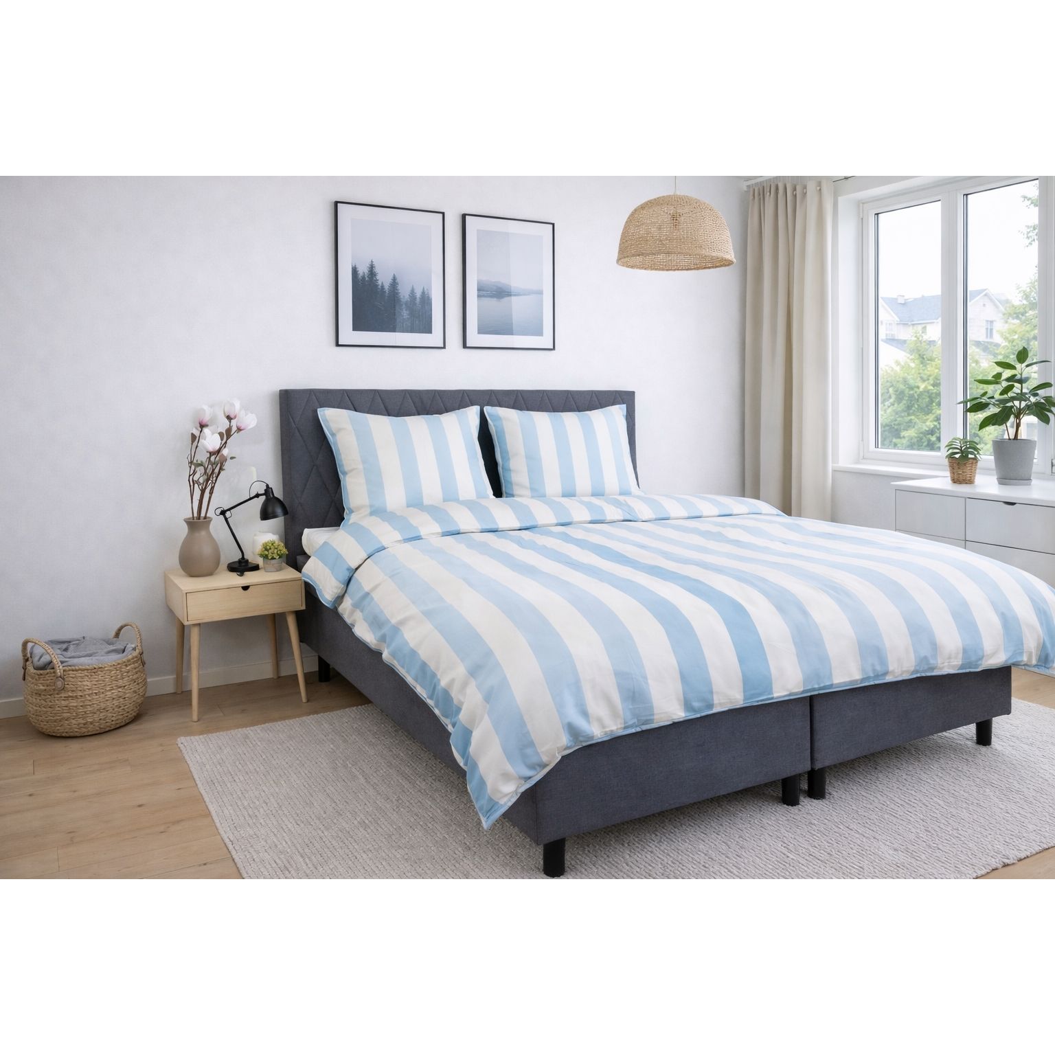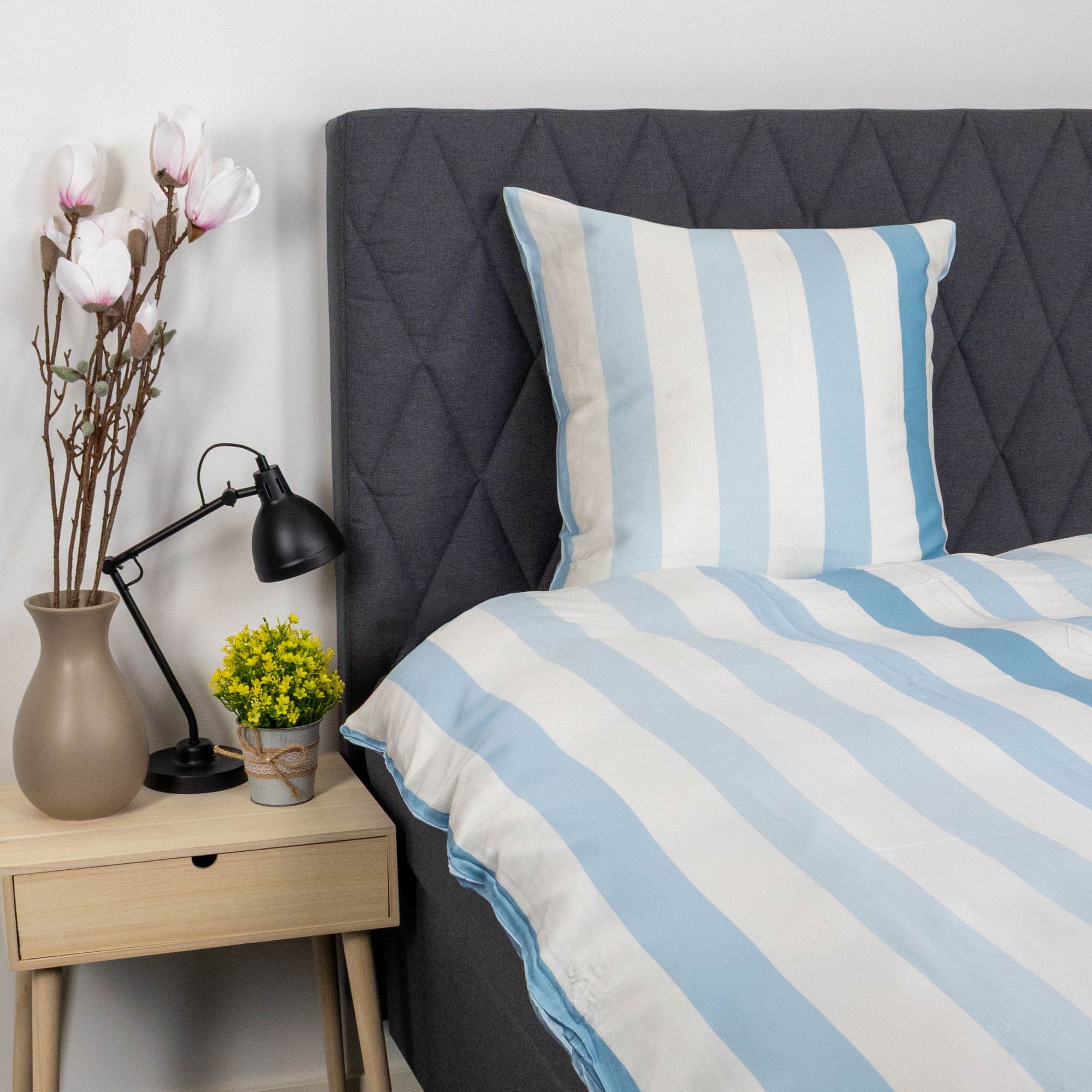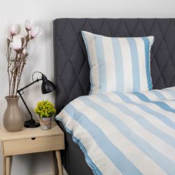 Bambus sengetøj med brede blå striber