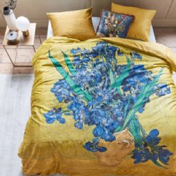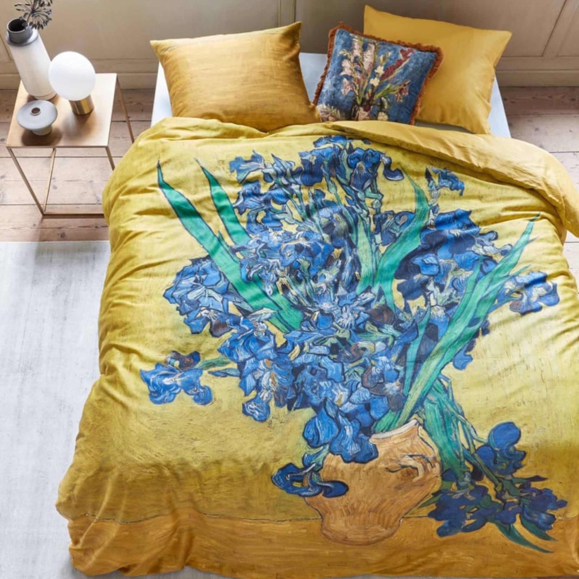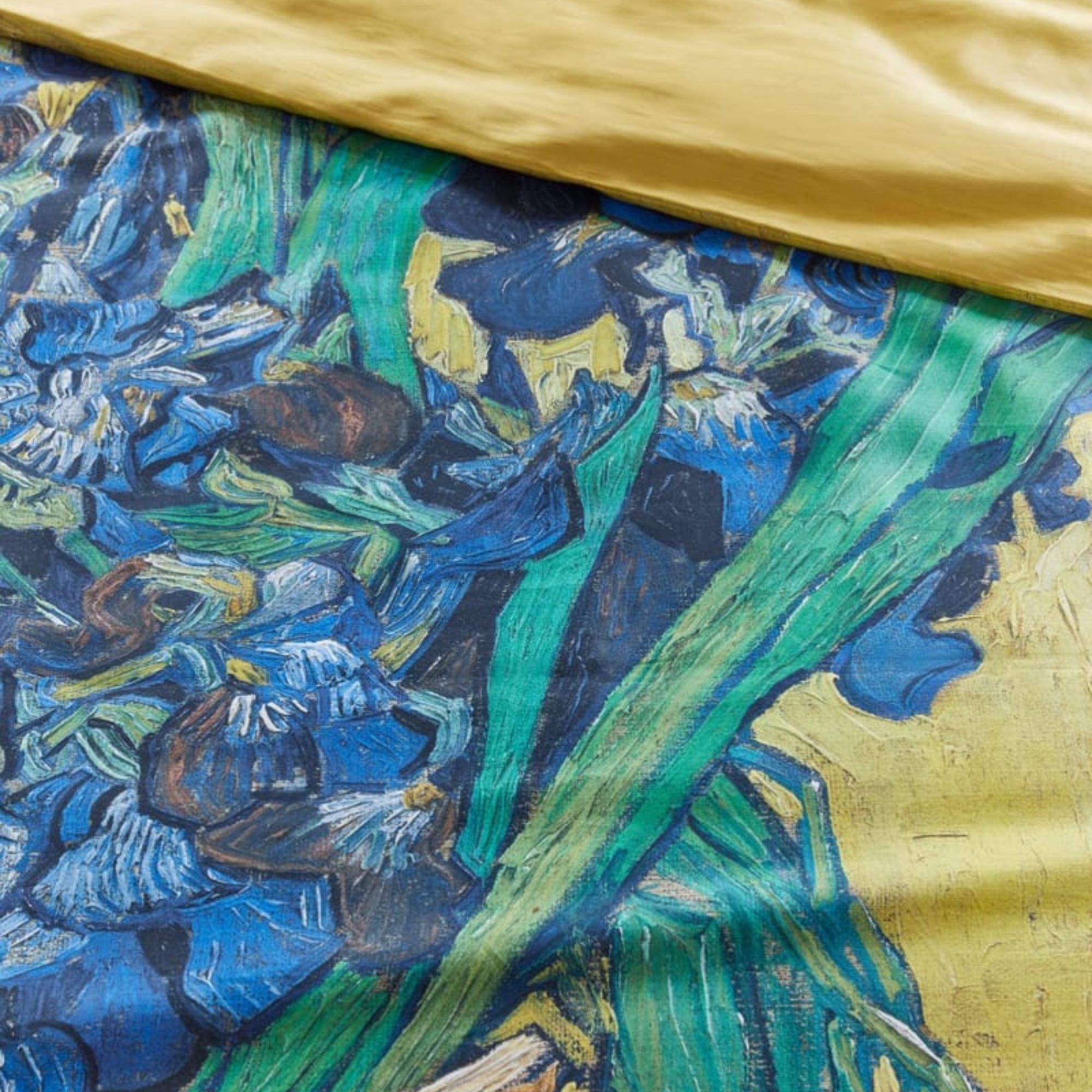 Blomstret sengetøj 140x200 cm - Gult sengesæt i 100% bomuldssatin - Van Gogh Irises - Beddinghouse sengelinned
