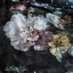 Blomstret sengetøj 140x200 cm - Sort sengesæt i 100% bomuldssatin - Fleur Festive Blooming - Essenza sengelinned