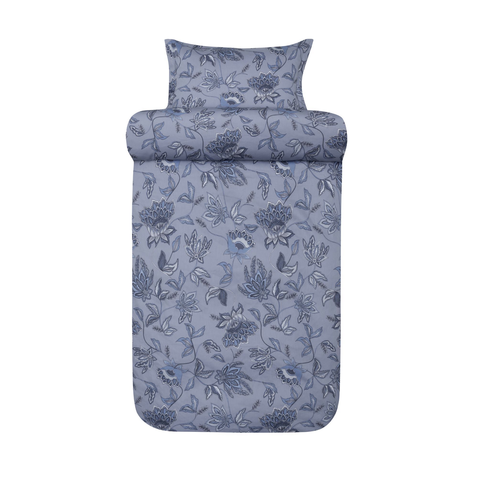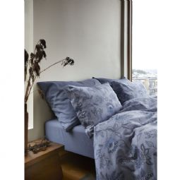 Blomstret sengetøj 140x200 cm - 100% bomuldssatin - Mille denim blå satin sengesæt - Høie Of Scandinavia sengelinned