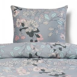 Blomstret sengetøj 140x220 cm - Støvet blåt microfiber sengesæt - IN Style sengelinned