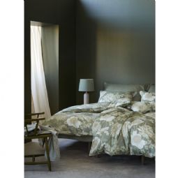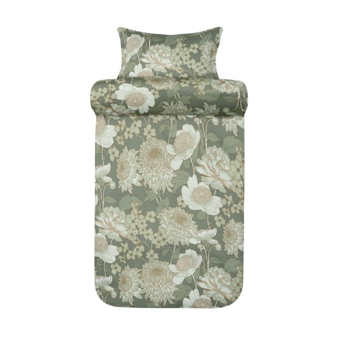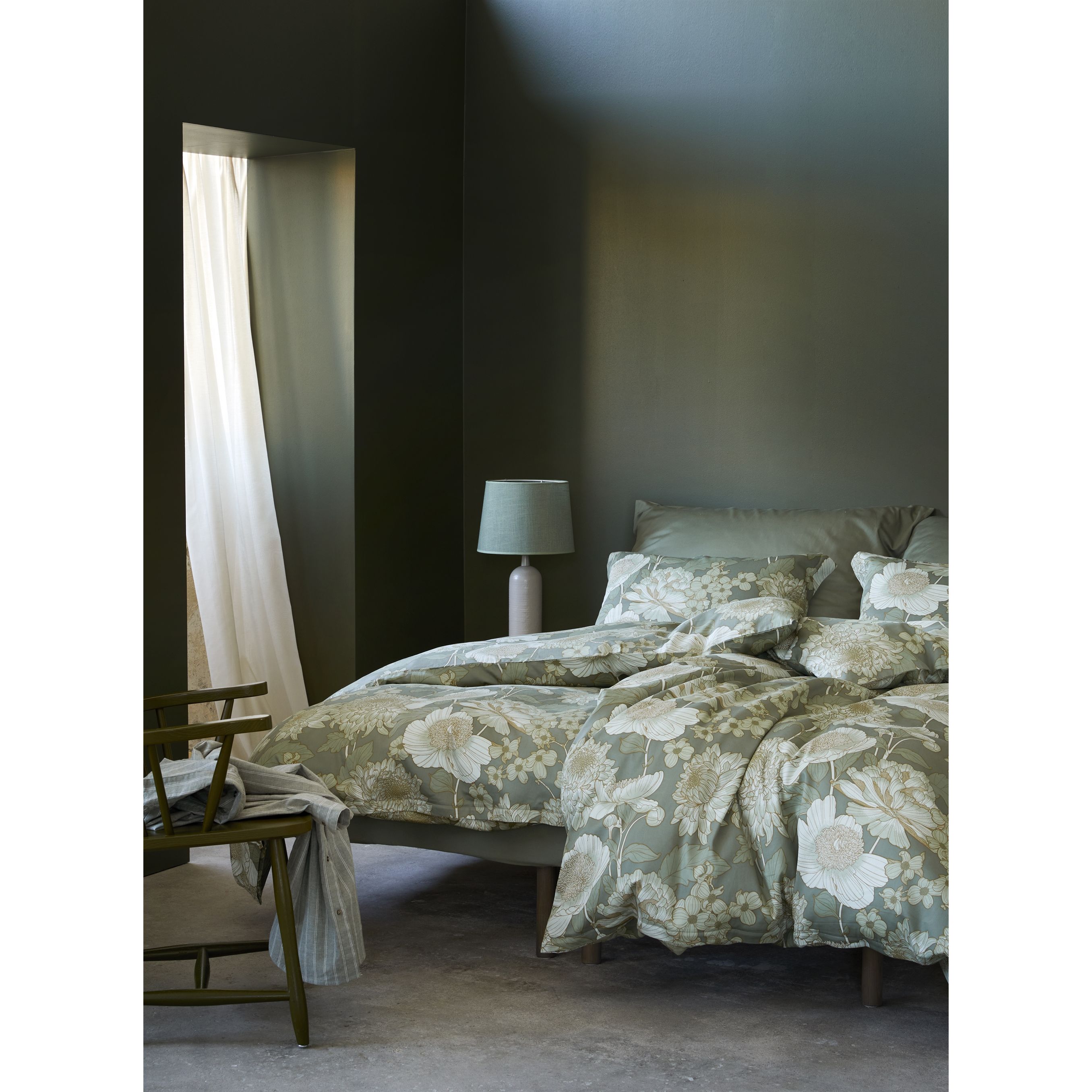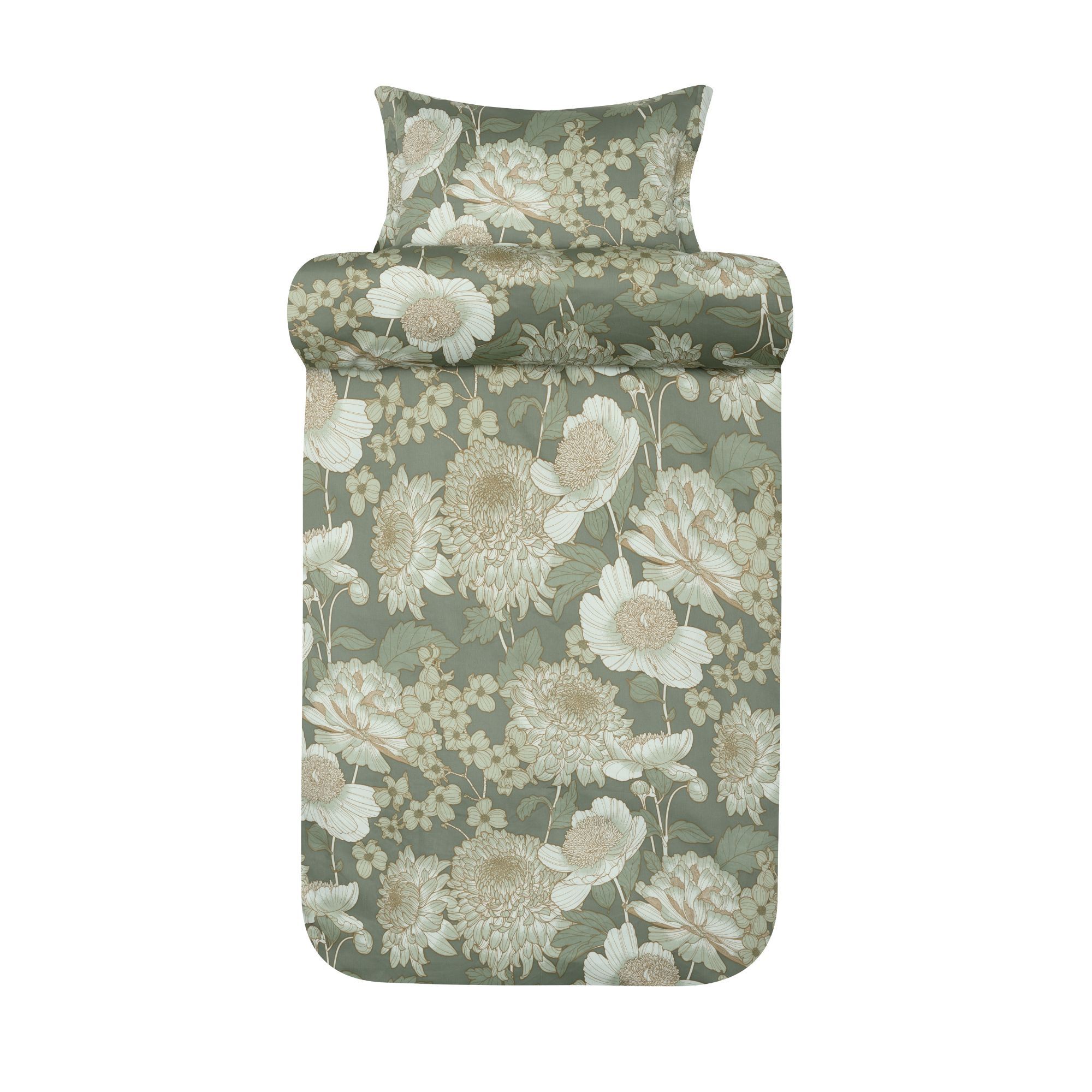 Blomstret sengetøj 140x220 cm - 100% bomuldssatin - Isabell dæmpet grøn satin sengesæt - Høie Of Scandinavia sengelinned