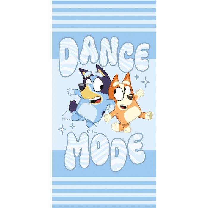 Bluey håndklæde - 70x140 cm - Blødt badehåndklæde med Bluey og Bingo i dance mode - 100% bomuld børnehåndklæde