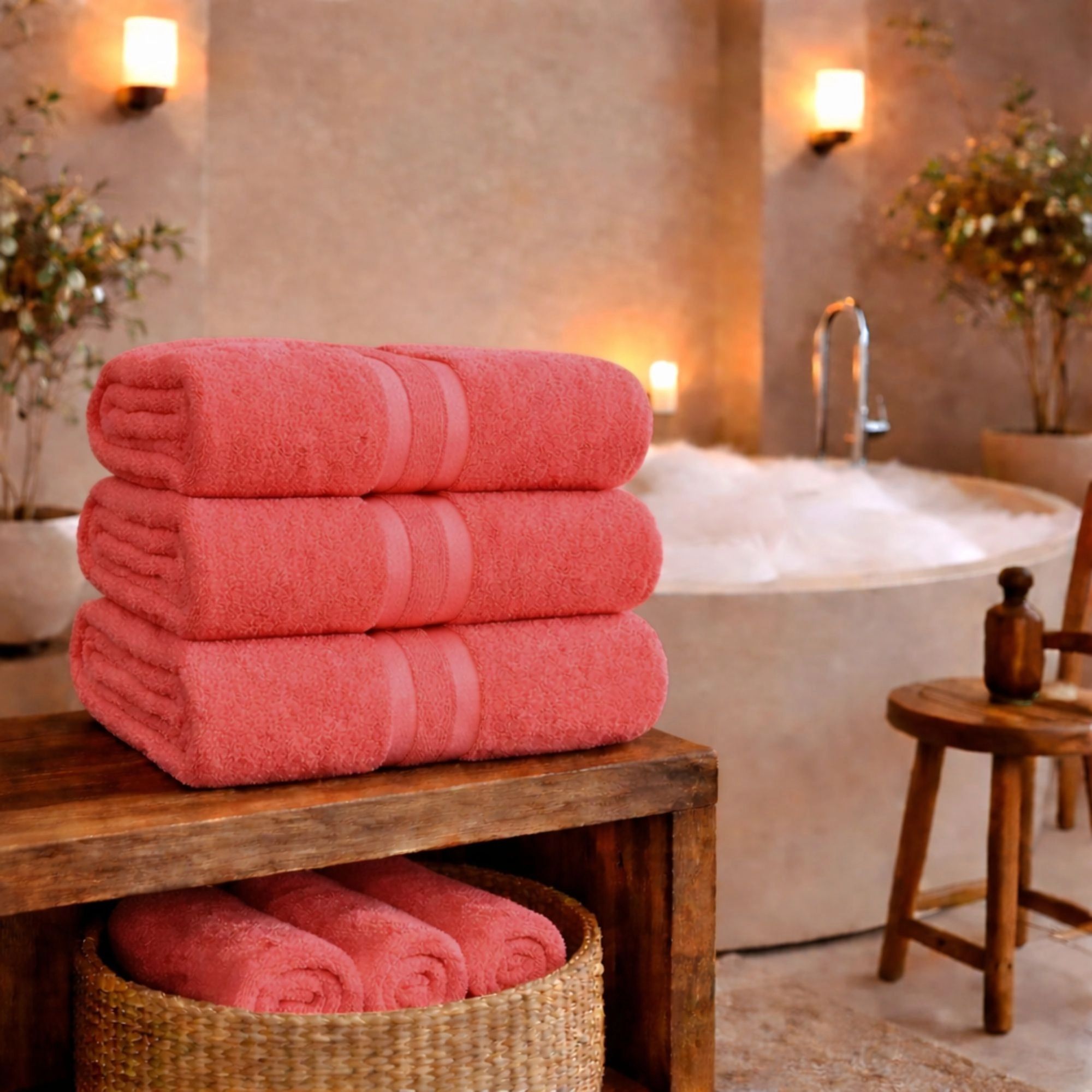 Bomulds håndklæde - 100% bomuld - 50x90 cm - Coral