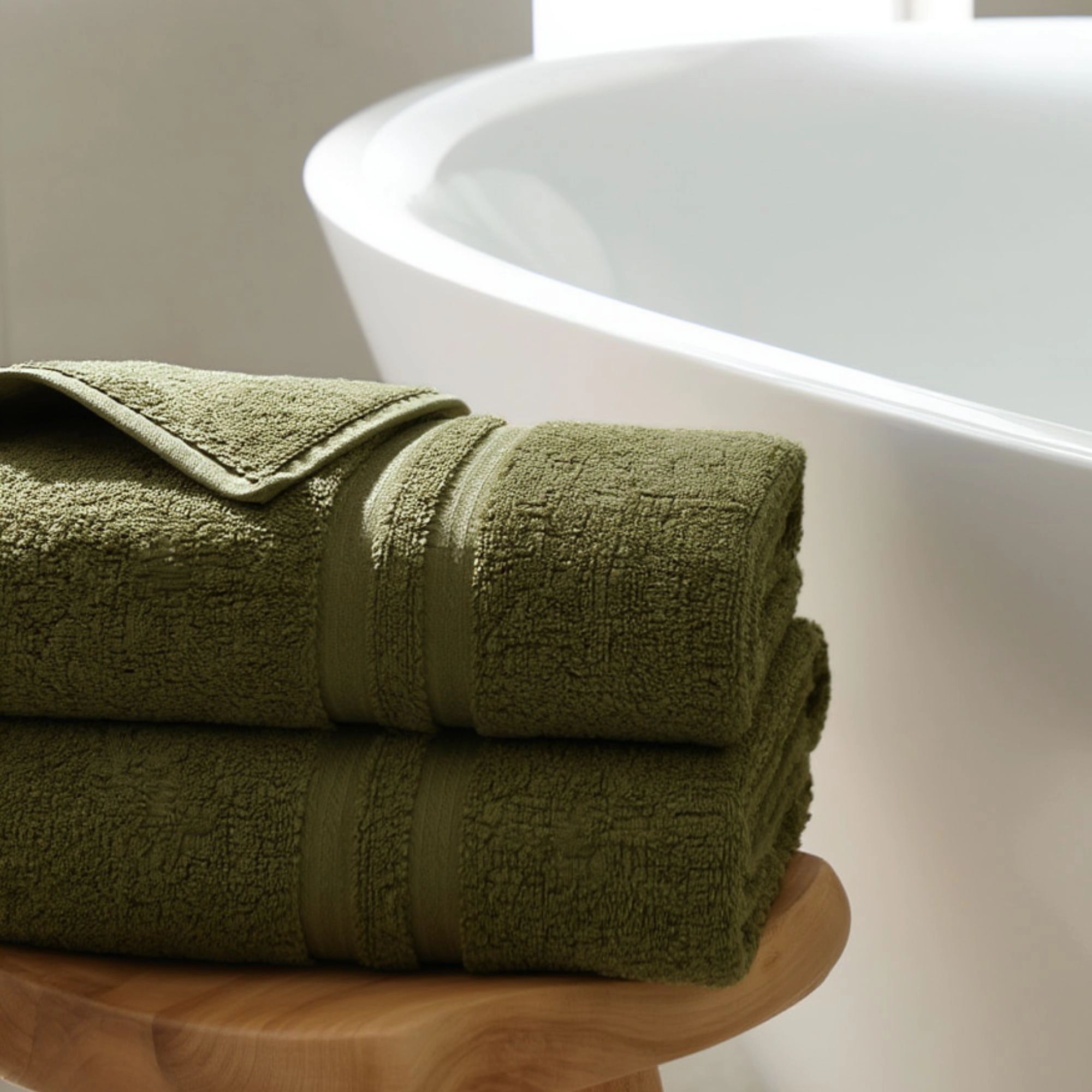 Bomulds håndklæde - 100% bomuld - Badehåndklæde 65x130 cm - Grøn