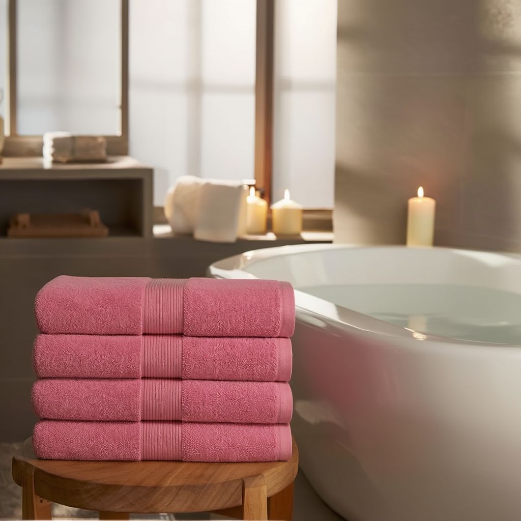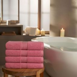 Bomulds håndklæde - 100% bomuld - Badehåndklæde 70x140 cm - Rosa