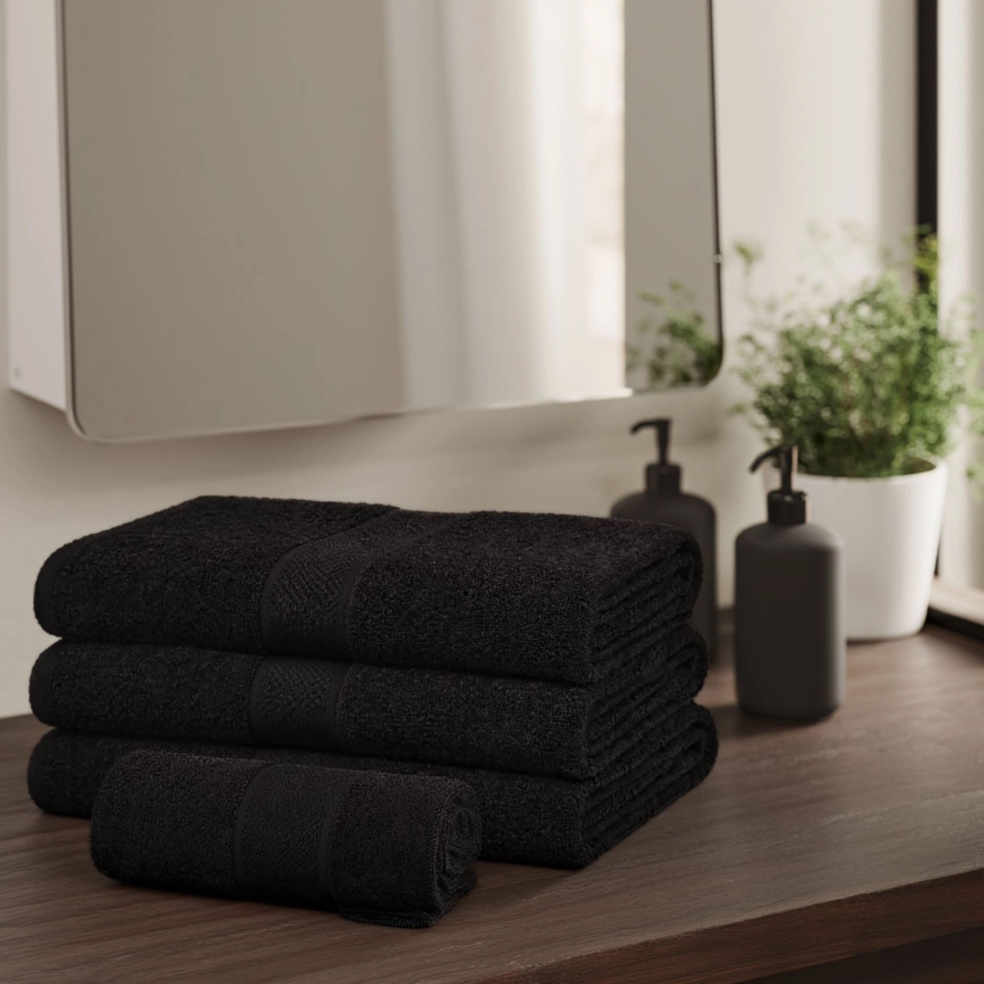 Bomulds håndklæde - 100% bomuld - Diamant - Sort
