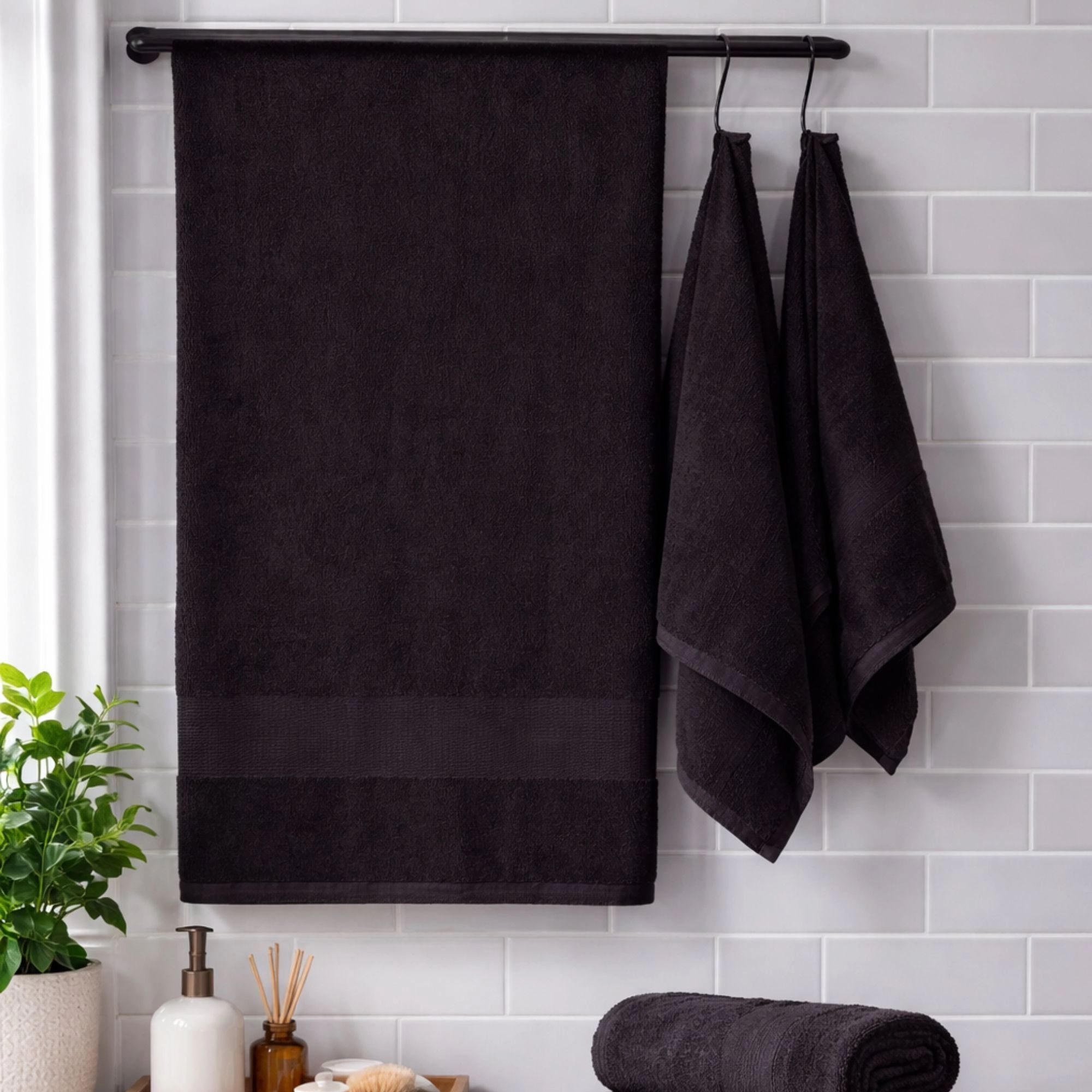 Lækkert bomuldshåndklæde i sort fra By Borg