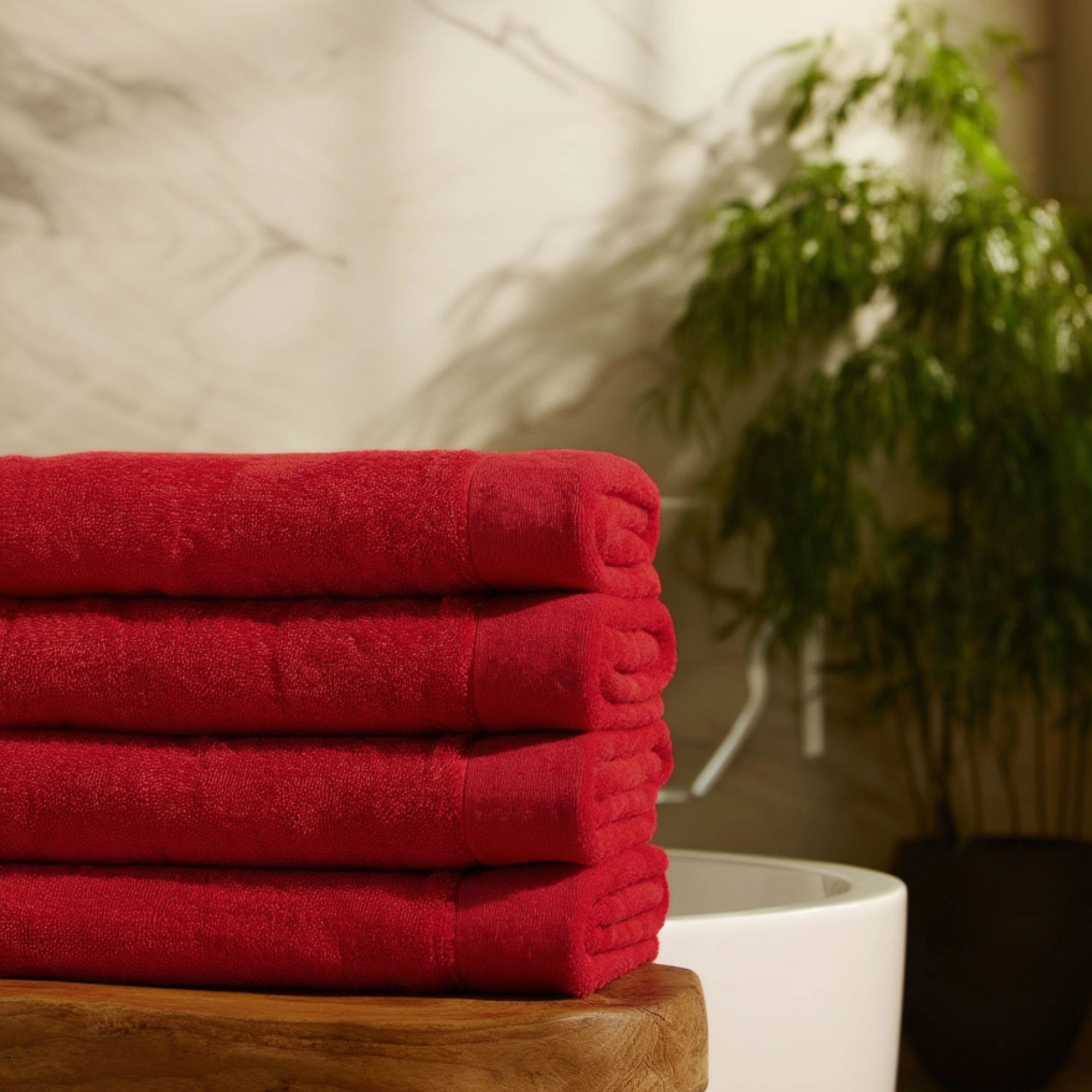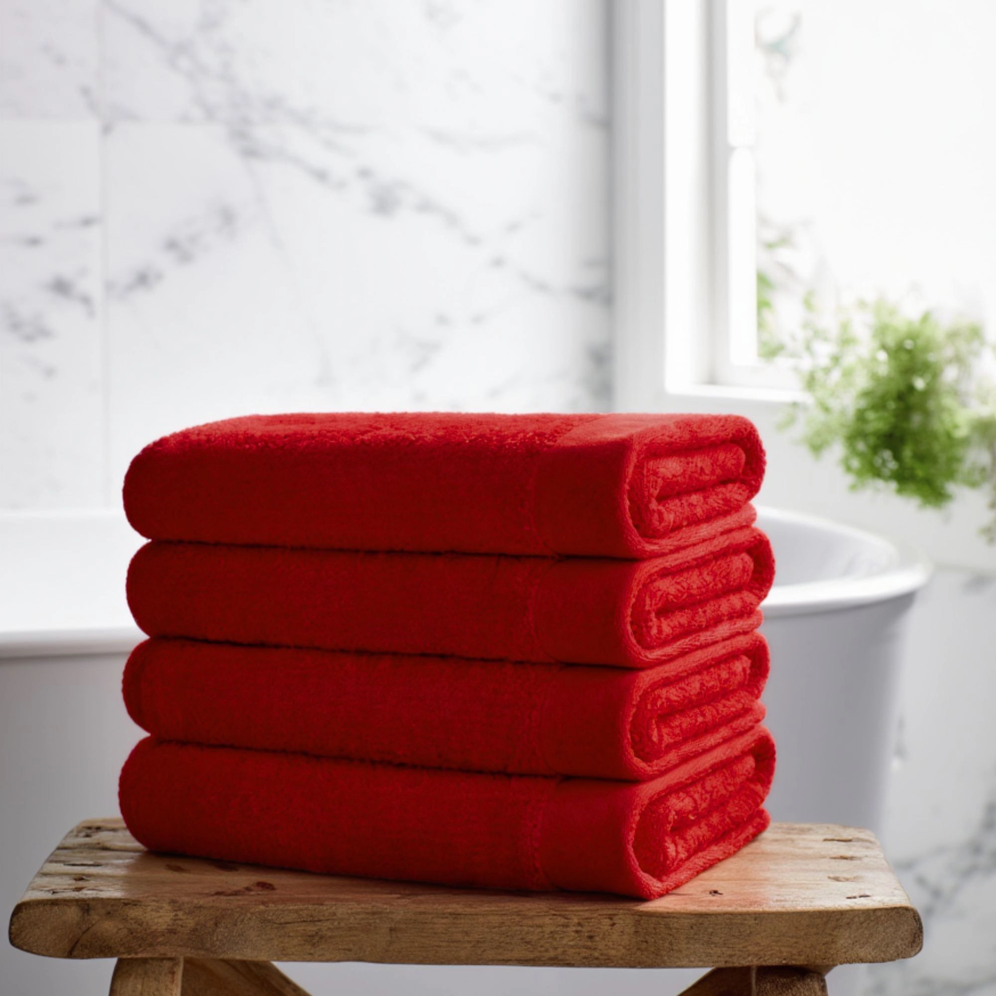 Bomulds håndklæde - 100% bomuld - Badelagen 100x150 cm - Valmue - Rød