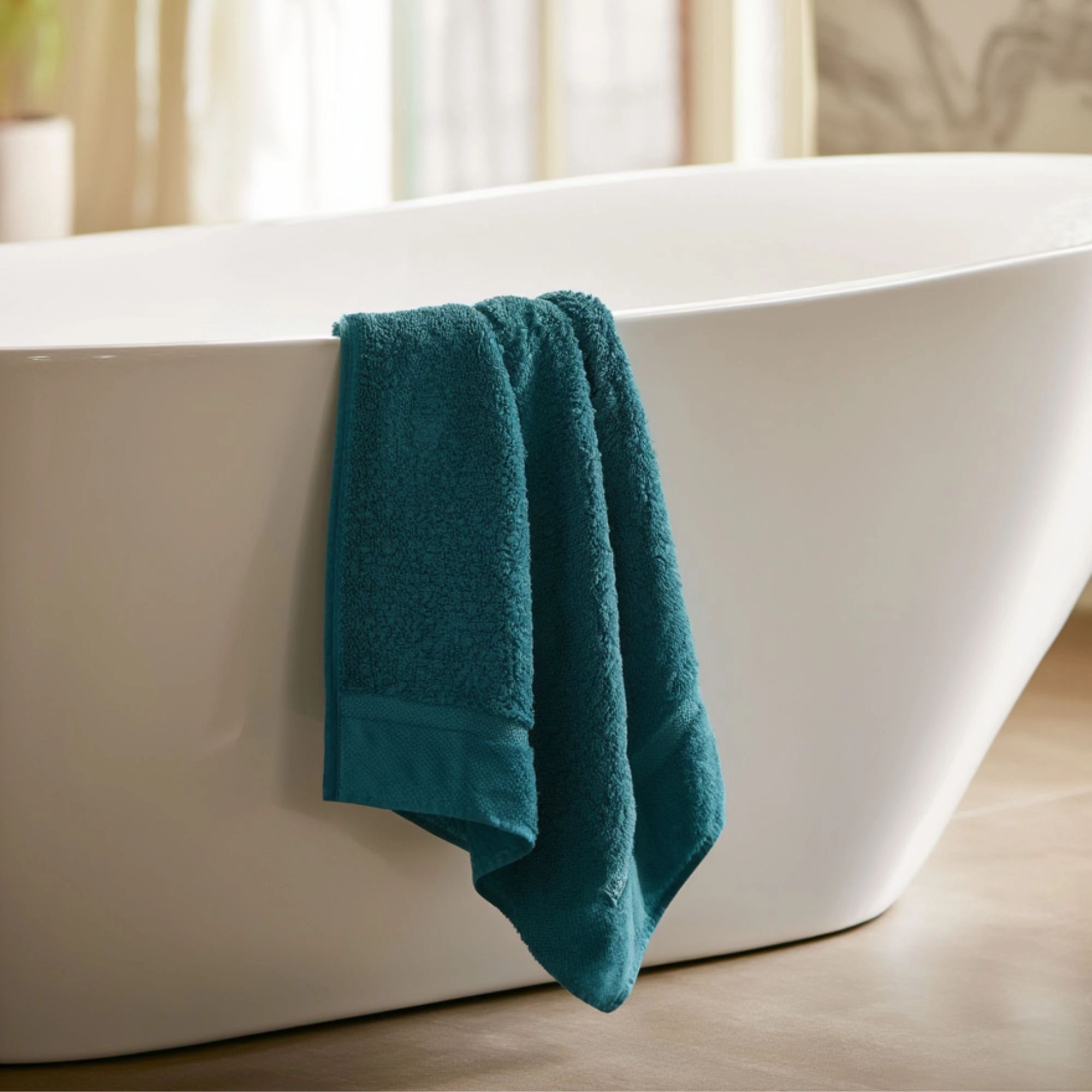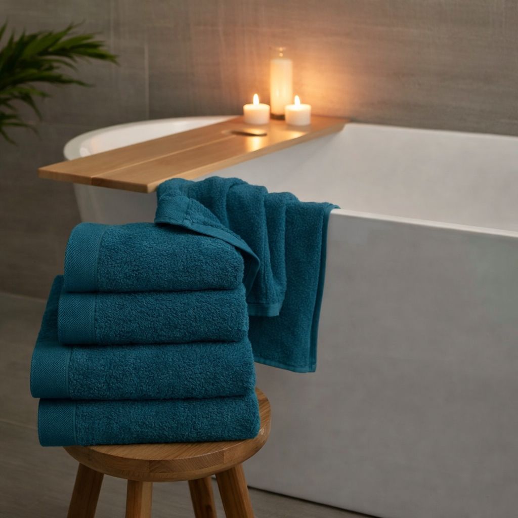 Bomuld er et naturligt materiale, der er kendt for sin blødhed, holdbarhed og gode sugeevne. Den tætte kvalitet på 500 g/m² giver håndklædet en luksuriøs følelse og sikrer samtidig god slidstyrke, så håndklædet kan bruges igen og igen i hverdagen.
