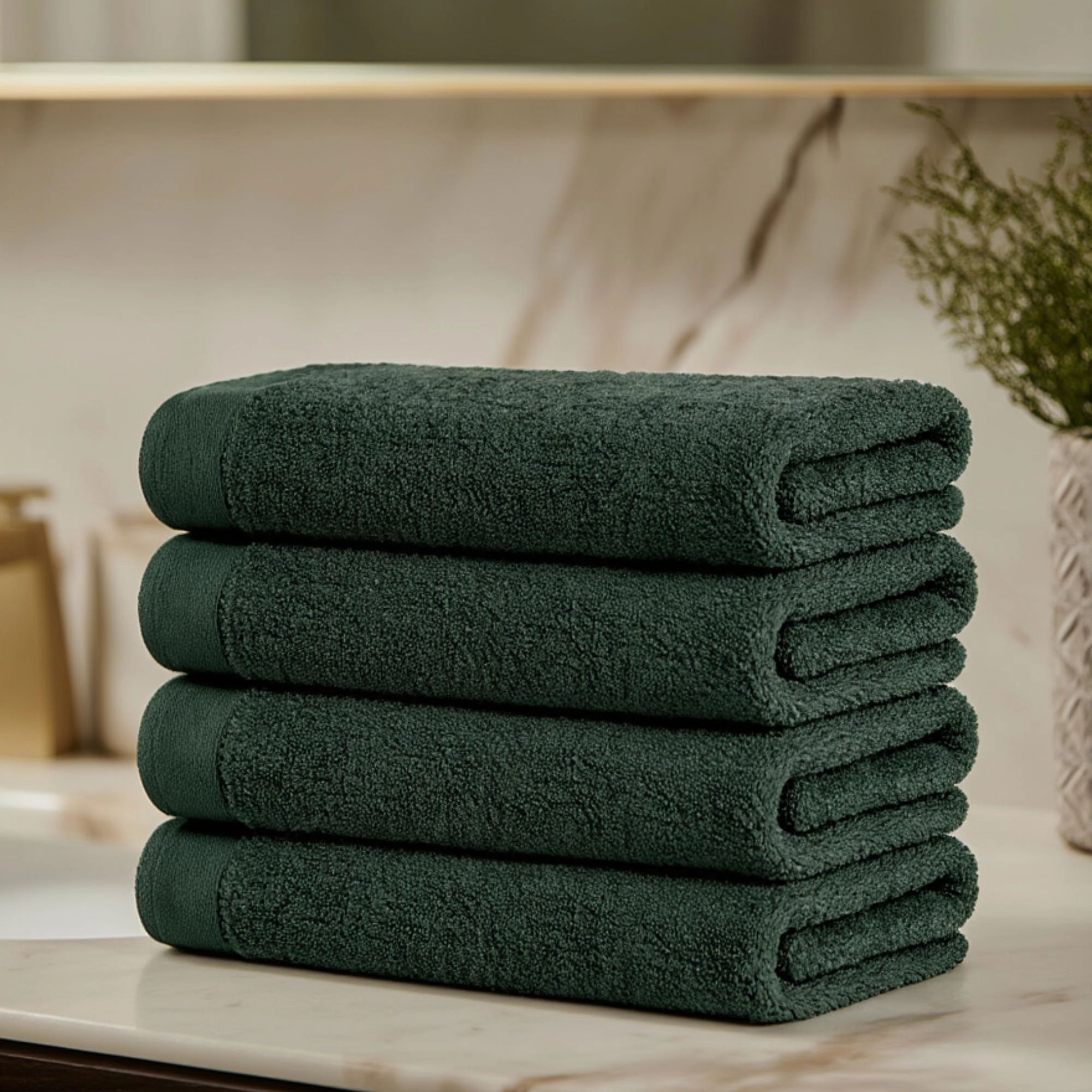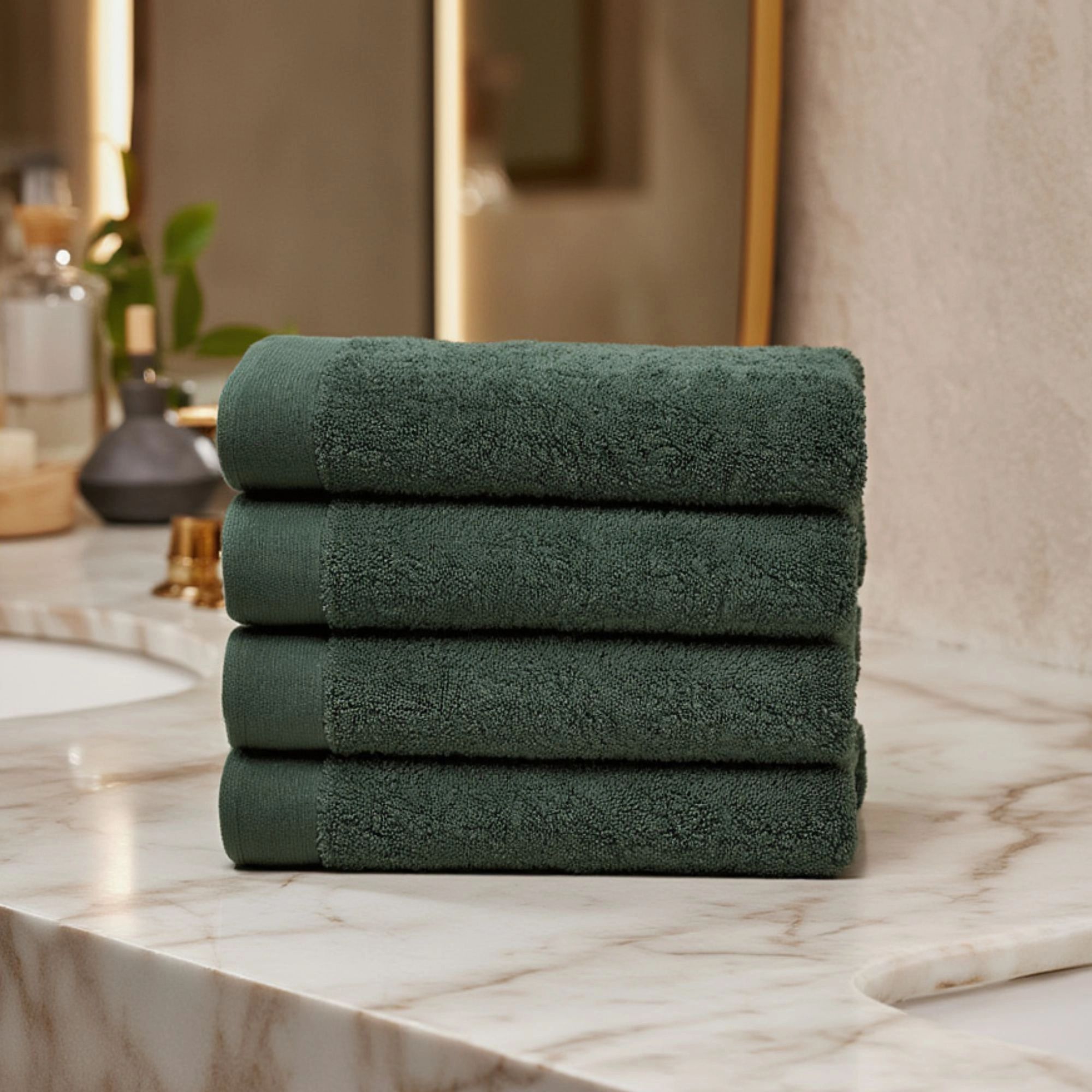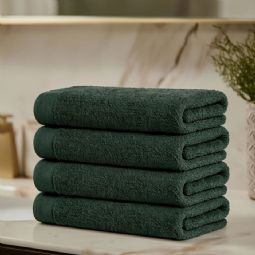 Bomulds håndklæde - 100% bomuld - Badelagen 100x150 cm - Valmue - Mørkegrøn