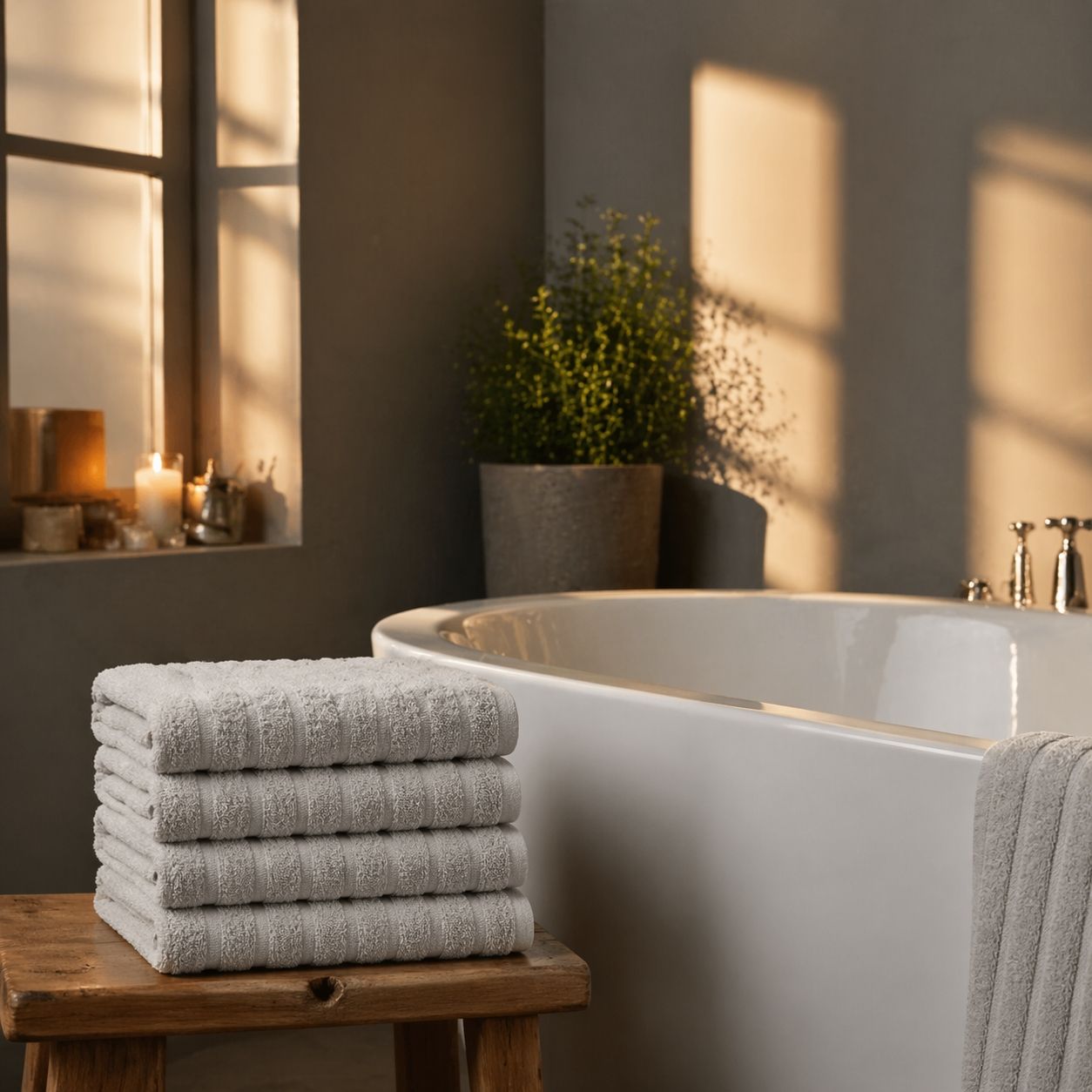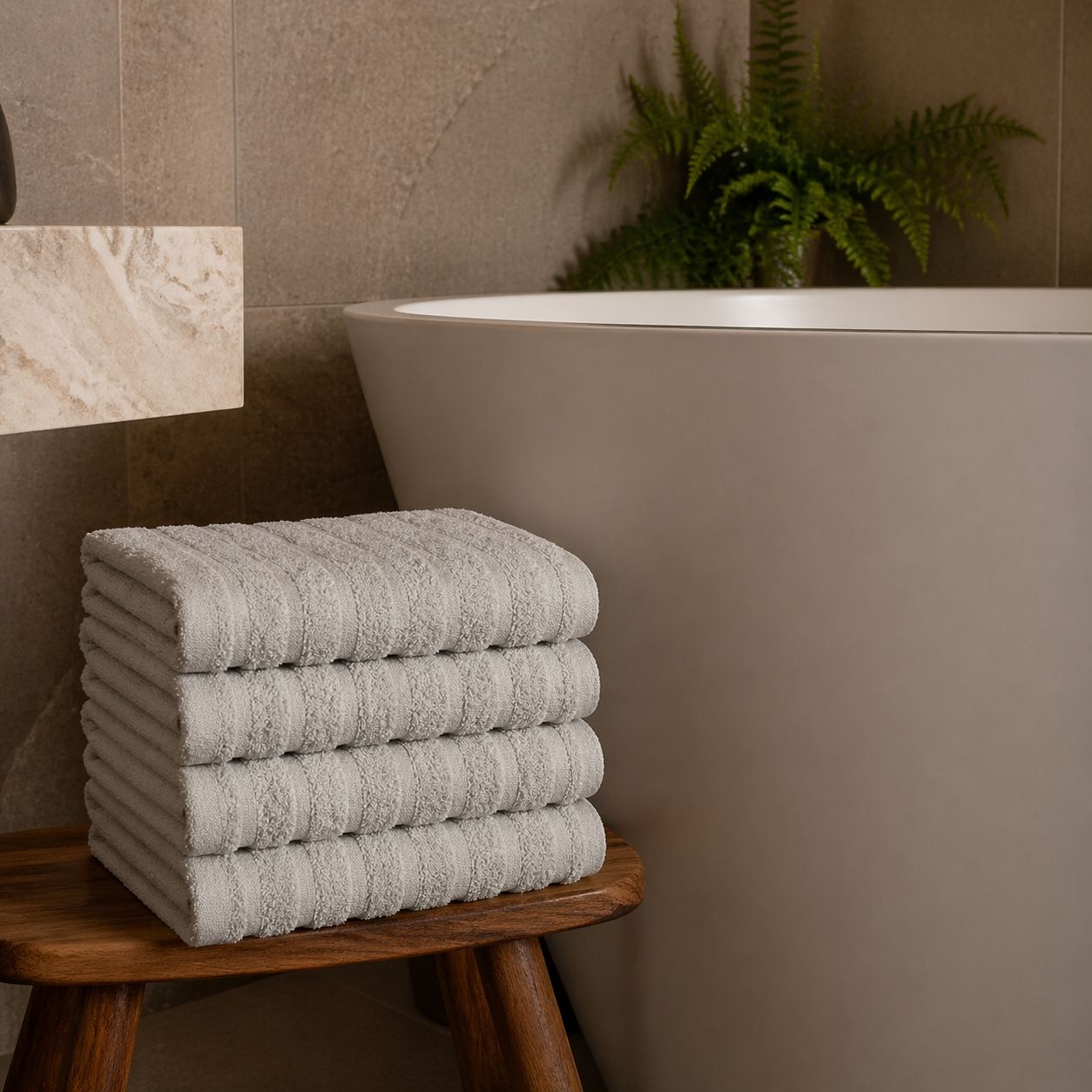 Kæmmet bomuld er en ekstra fin bomuldstype, hvor de korteste fibre er fjernet i forarbejdningen. Det efterlader kun de stærkeste og længste fibre, hvilket giver en glattere, blødere og mere ensartet kvalitet. Den tætte kvalitet på 550 g/m² sikrer en komfortabel og fyldig fornemmelse, samtidig med at håndklædet effektivt absorberer vand og bevarer sin blødhed vask efter vask.