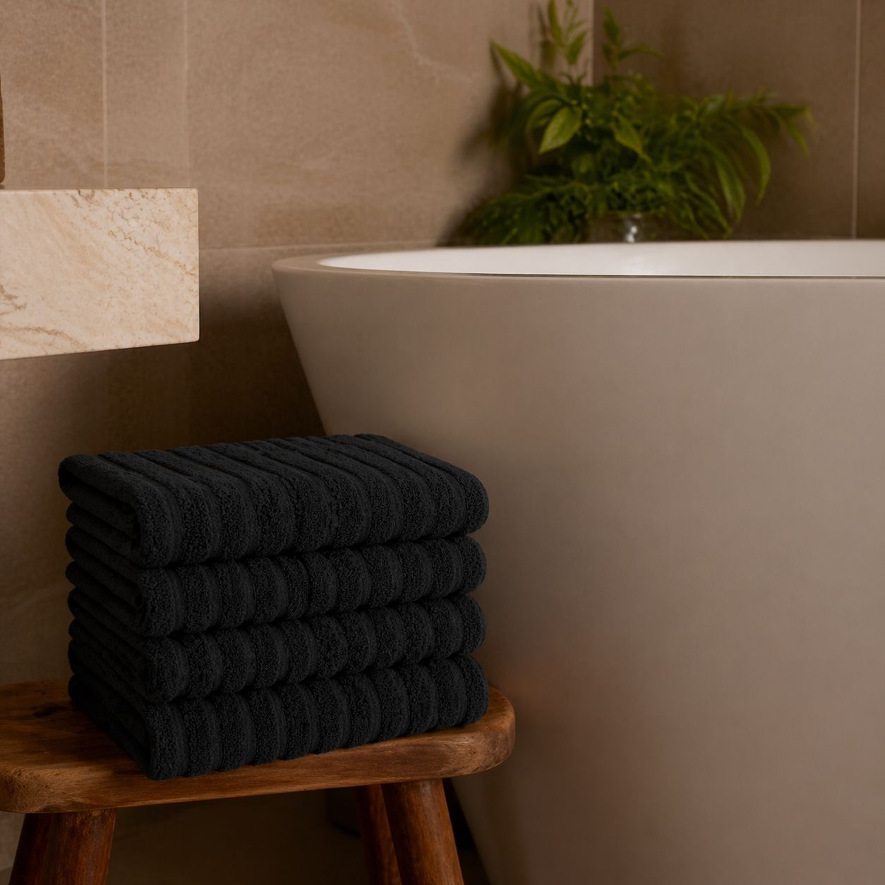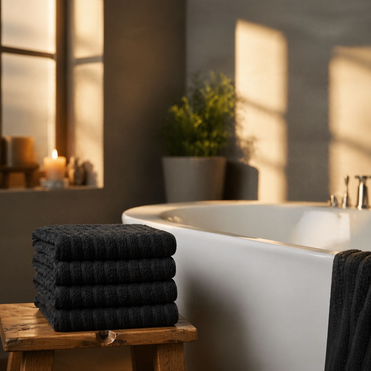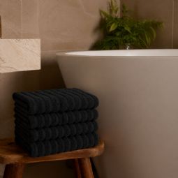 Opgrader dit badeværelse med disse stilfulde badehåndklæder i en sort nuance, der tilfører ro og elegance til indretningen. Det klassiske og enkelte design giver et tidløst udtryk, som passer perfekt ind i både moderne og traditionelle hjem. Badehåndklæderne er fremstillet i 100% kæmmet bomuld, hvor de finere og længere fibre giver en ekstra blød og glat overflade. Resultatet er en behagelig kvalitet, der føles skånsom mod huden og samtidig sikrer en effektiv absorbering i hverdagen.