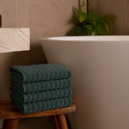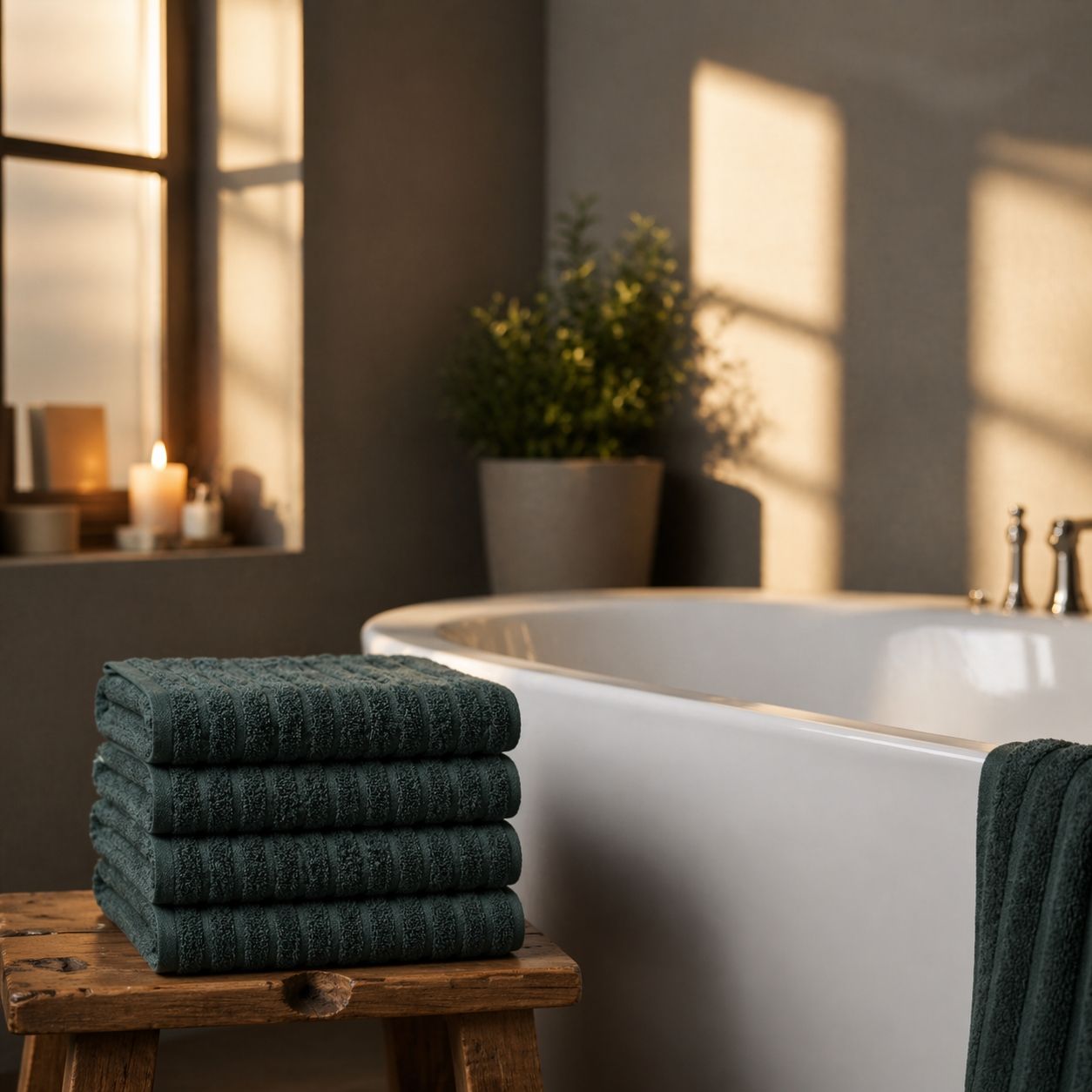 Opgrader dit badeværelse med disse stilfulde badehåndklæder i en mørkegrøn nuance, der tilfører ro og elegance til indretningen. Det klassiske og enkelte design giver et tidløst udtryk, som passer perfekt ind i både moderne og traditionelle hjem. Badehåndklæderne er fremstillet i 100% kæmmet bomuld, hvor de finere og længere fibre giver en ekstra blød og glat overflade. Resultatet er en behagelig kvalitet, der føles skånsom mod huden og samtidig sikrer en effektiv absorbering i hverdagen.