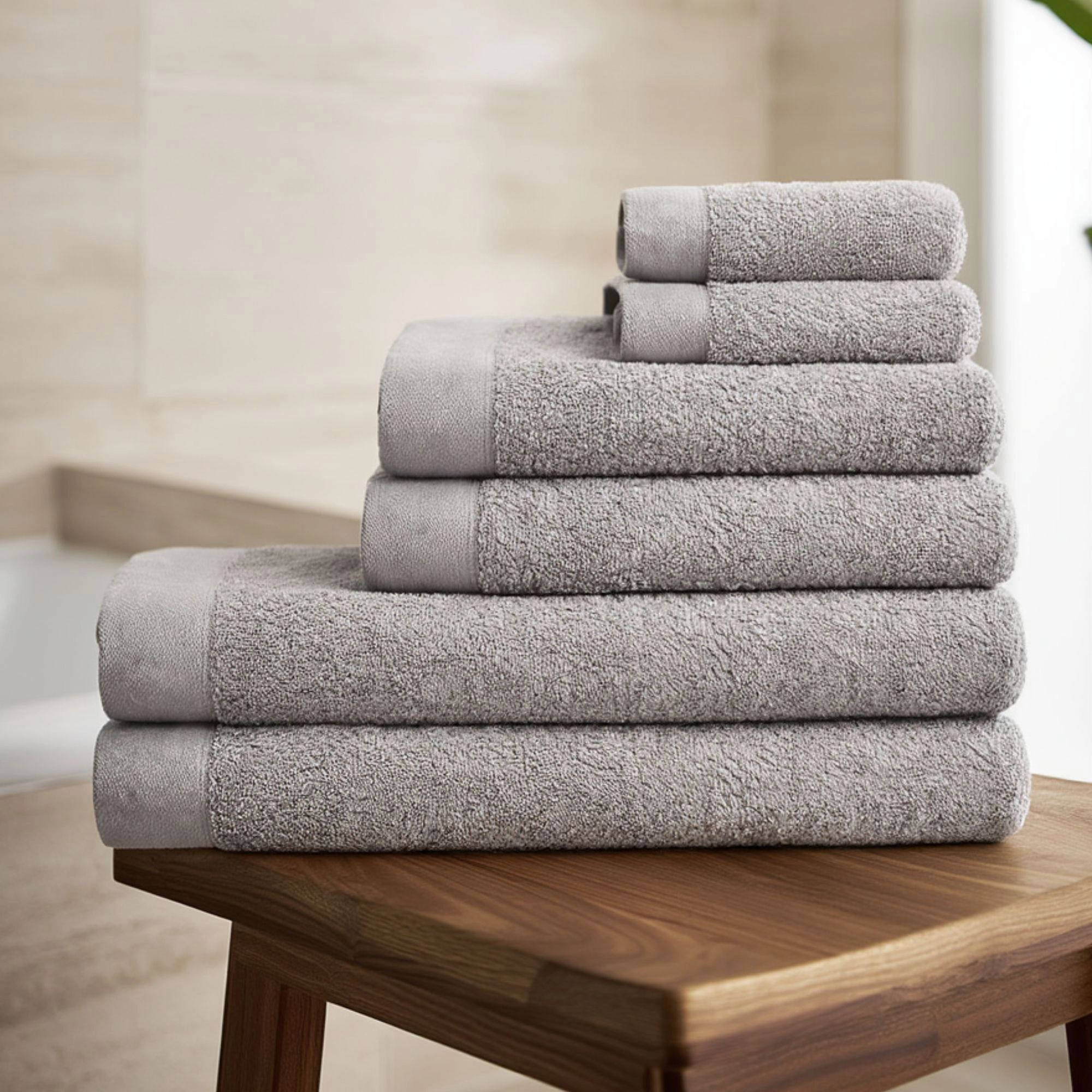 Forkæl dit badeværelse med dette elegante håndklædesæt fra By Borg. Med denne 6-pak får du både funktionalitet og stil samlet i ét - perfekt til dig, der ønsker en flot og indbydende indretning. Denne 6-pak 6 består af 2 stk. 40x60 cm gæstehåndklæder, 2 stk. 50x100 cm håndklæder og 2 stk. 70x140 cm badehåndklæder. Håndklæderne er fremstillet i 100% bomuld, hvilket giver en blød og behagelig overflade, der føles skøn mod huden efter badet. Den praktiske ophængsstrop gør det nemt at hænge håndklædet op, så det altid er klar til brug. Et oplagt valg til dig, der ønsker bløde, slidstærke og stilfulde håndklæder i hverdagen.
