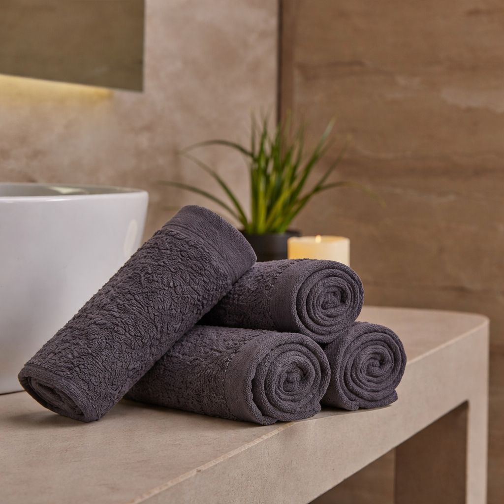 Bomulds vaskeklude - 100% bomuld - Vaskeklude 30x30 cm - 4-pak - Valmue - Mørkegrå