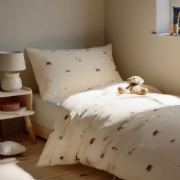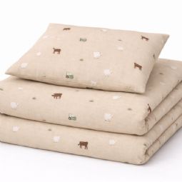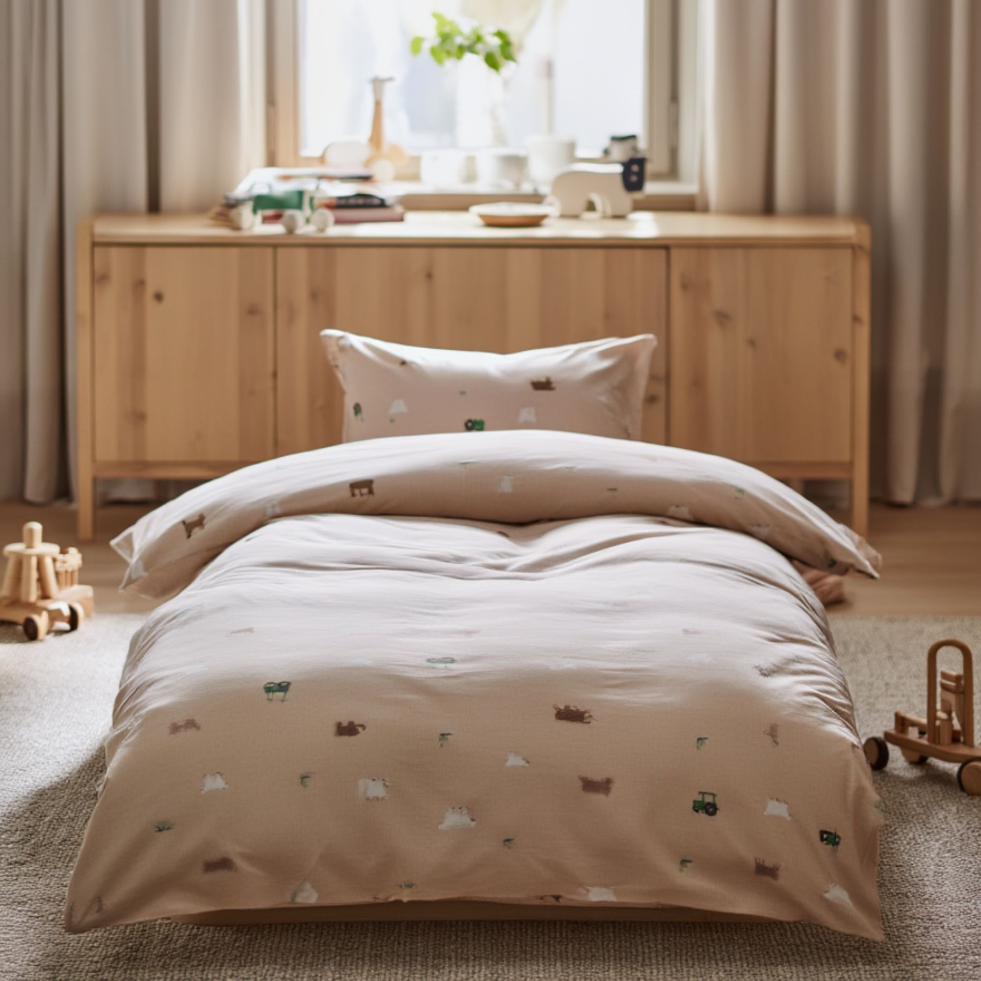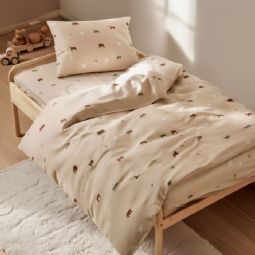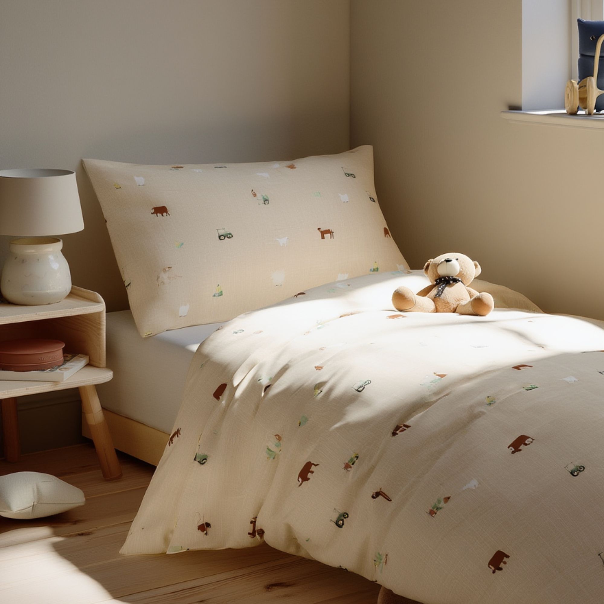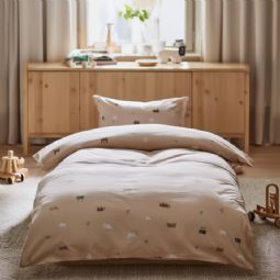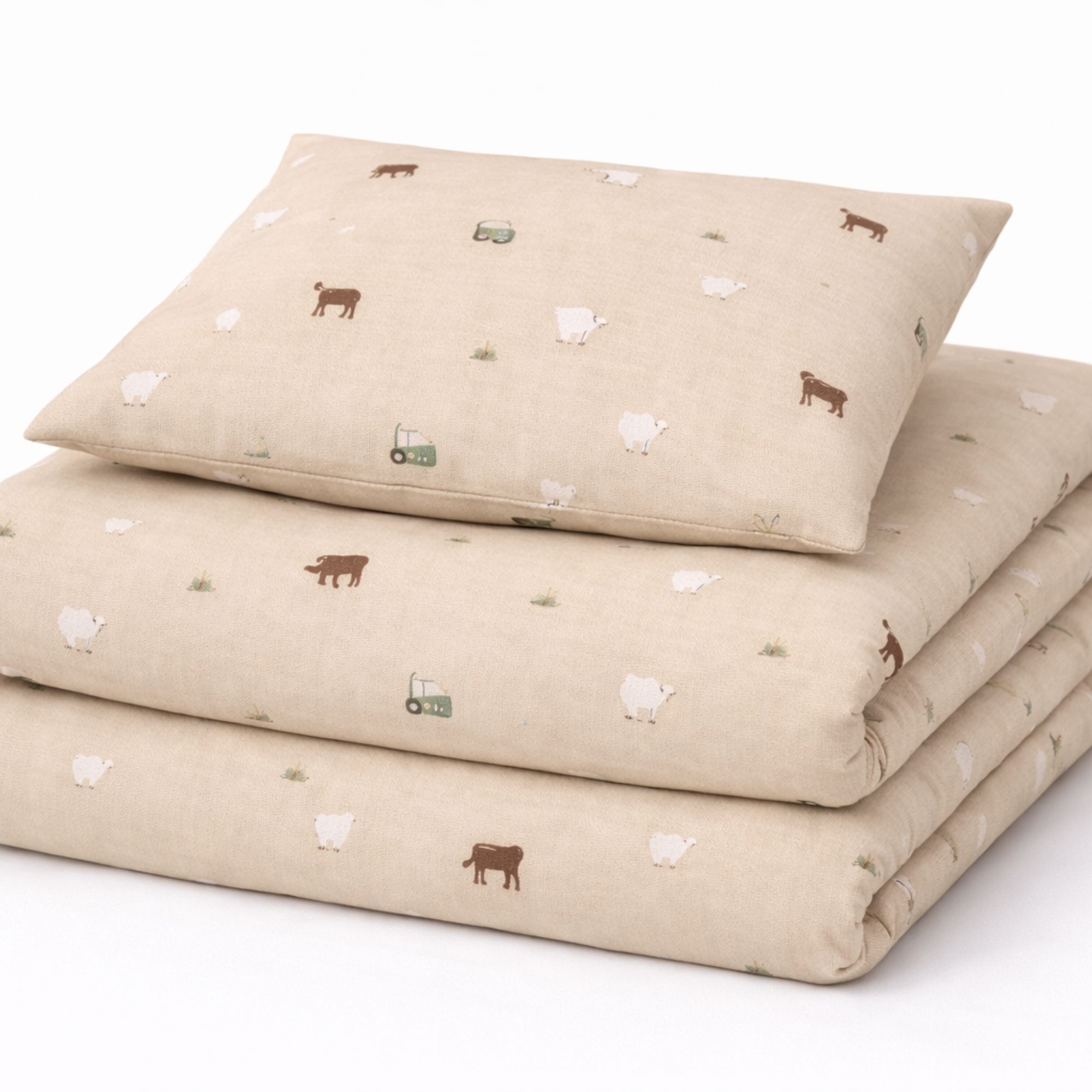 Bondegårdsmotiv sengetøj - 100% bomuld - Babysengetøj 70x100 cm - Beige med bondegårdsmotiver