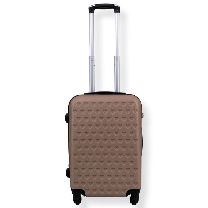 Brun kabinekuffert - Hardcase kuffert med hjerter - Stødsikkert polypropylen - Rejsekuffert