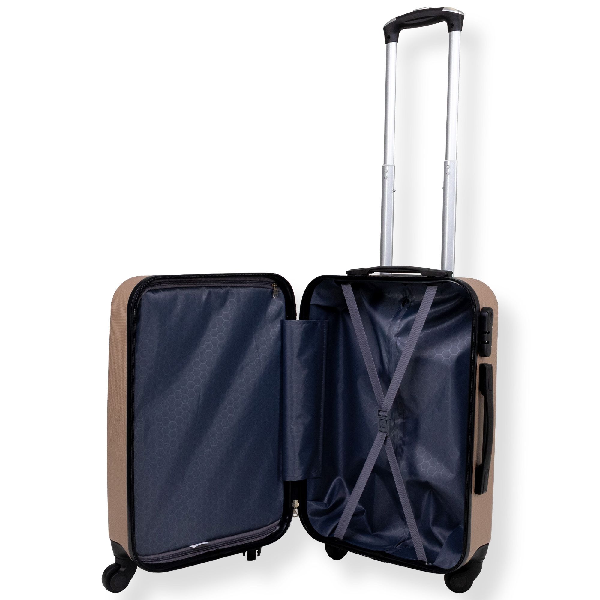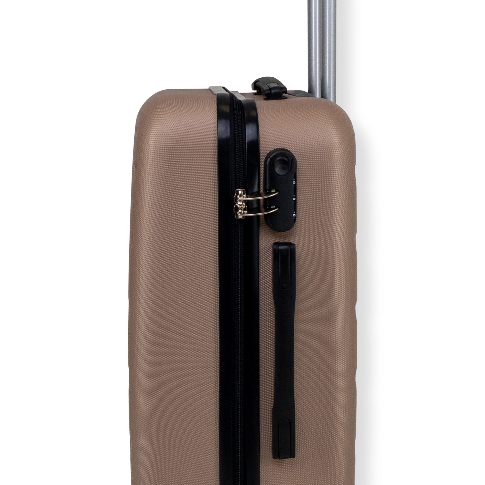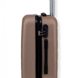 Denne brune kabinekuffert med hjerter er den perfekte rejsemakker til både korte og længere ture. Rejs nemt og sikkert med en kabinekuffert fremstillet i slidstærkt ABS plast. Materialet giver en stærk og holdbar overflade, som er modstandsdygtig overfor de hårde slag og pres, der kan opstå på f.eks. et bagagebånd. Det slidstærke materiale beskytter altså dine ejendele på hele rejsen - samtidig er kufferten let og nem at håndtere.