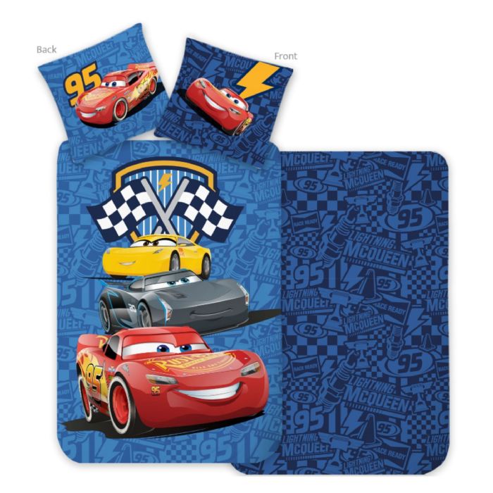 Cars sengetøj med vendbart design, forskellige motiver på forsiden og bagsiden. På den ene side af sengetøjet, er der motiv af Lynet McQueen, Cruz Ramirez & Jackson Storm. På den anden side er der all-over tekst. Sengesættet er produceret i 100% blød bomuld som gør sættet slidestærkt og med høj åndbarhed. Den rene bomuldskvalitet giver et lækkert og blødt sengesæt, der er med til at fremme en sovekomfort for barnet. Bomuldssengetøj kan vaskes ved 60° i vaskemaskinen, som er også et med til at holde et et højt hygiejne niveau. Sengetøjet er yderligere fremstillet med OEKO-TEX certificeret, hvilke er din garanti for at sættet er fri for skadelig kemi.