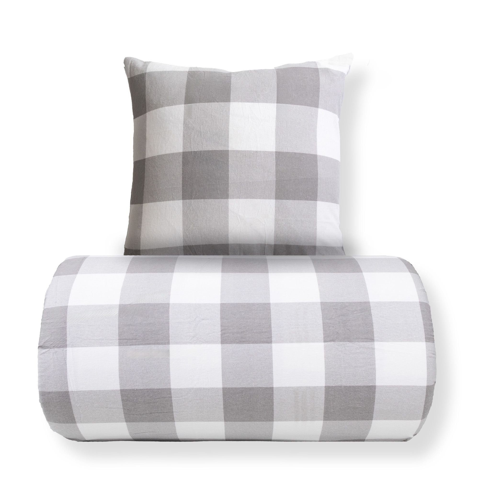Dobbelt sengetøj 200x200 cm - Bomulds flonel - Grå og hvide tern