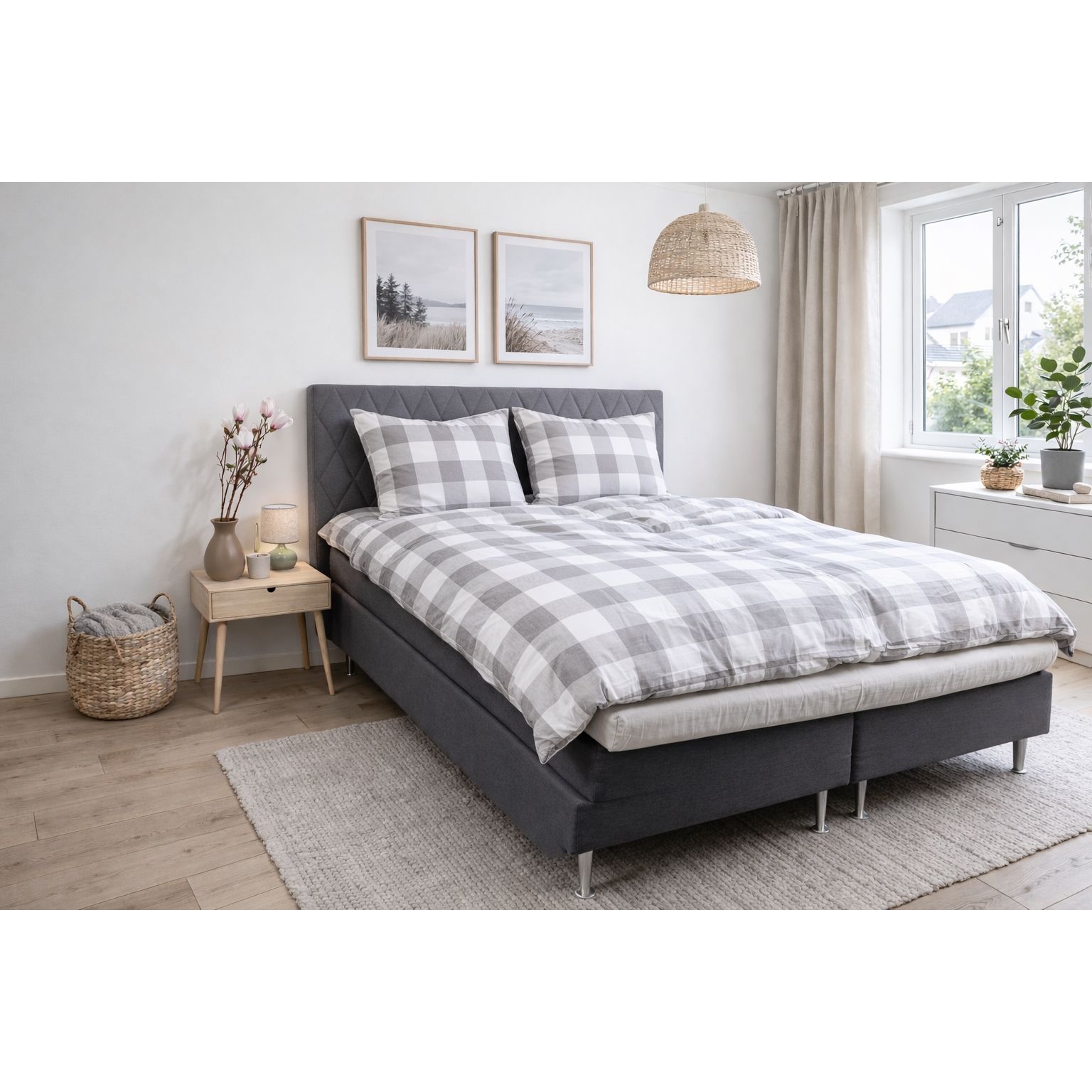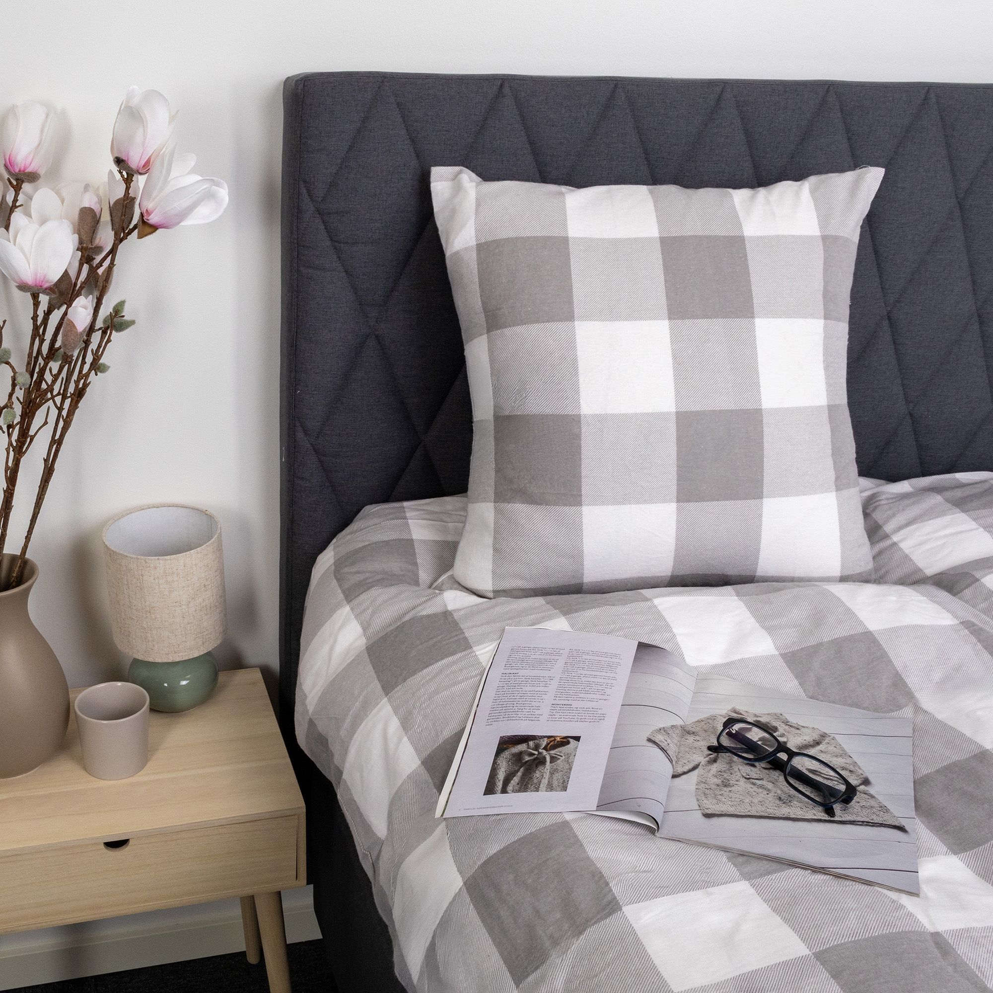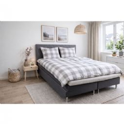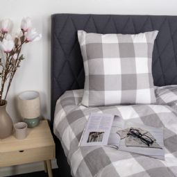 Det ternet design kombinerer flotte grå og hvide tern, hvilket skaber et roligt og harmonisk udtryk i soveværelset. Et ternet sengetøj, der både føles lunt og ser elegant ud.