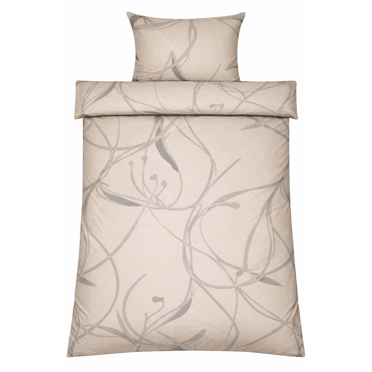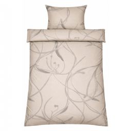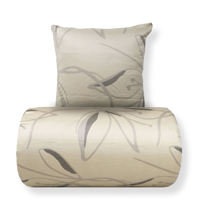 Dobbelt sengetøj 200x220 cm - 100% bomuldssatin - Iris - Beige blomster print