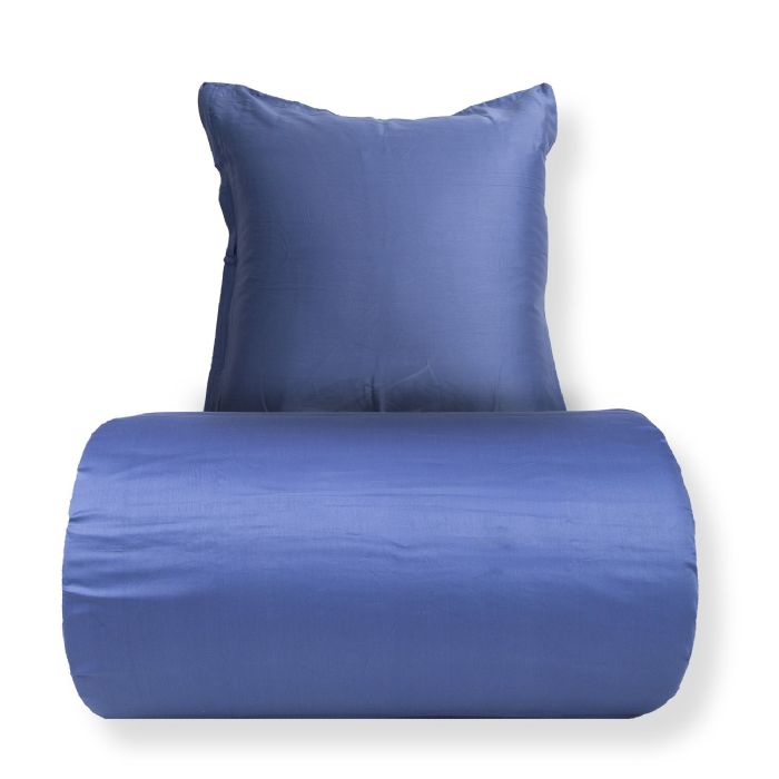 Dobbelt sengetøj 200x220 cm - 100% bomuldssatin - Blå med lyseblå pipingkant