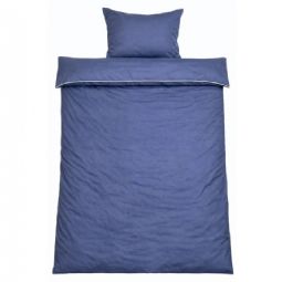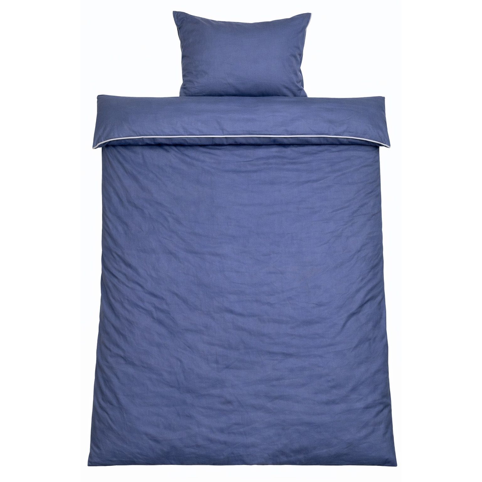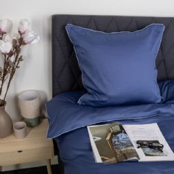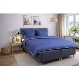 Skab et elegant og luksuriøst udtryk i soveværelset med dette eksklusive sengesæt til dobbeltdyner i 100% bomuldssatin med en dekorativ pipingkant fra By Borg. Det ensfarvede design i dyb blå kombineret med en lysere pipingkant tilfører et stilrent og sofistikeret look, der løfter helhedsindtrykket i soveværelset.