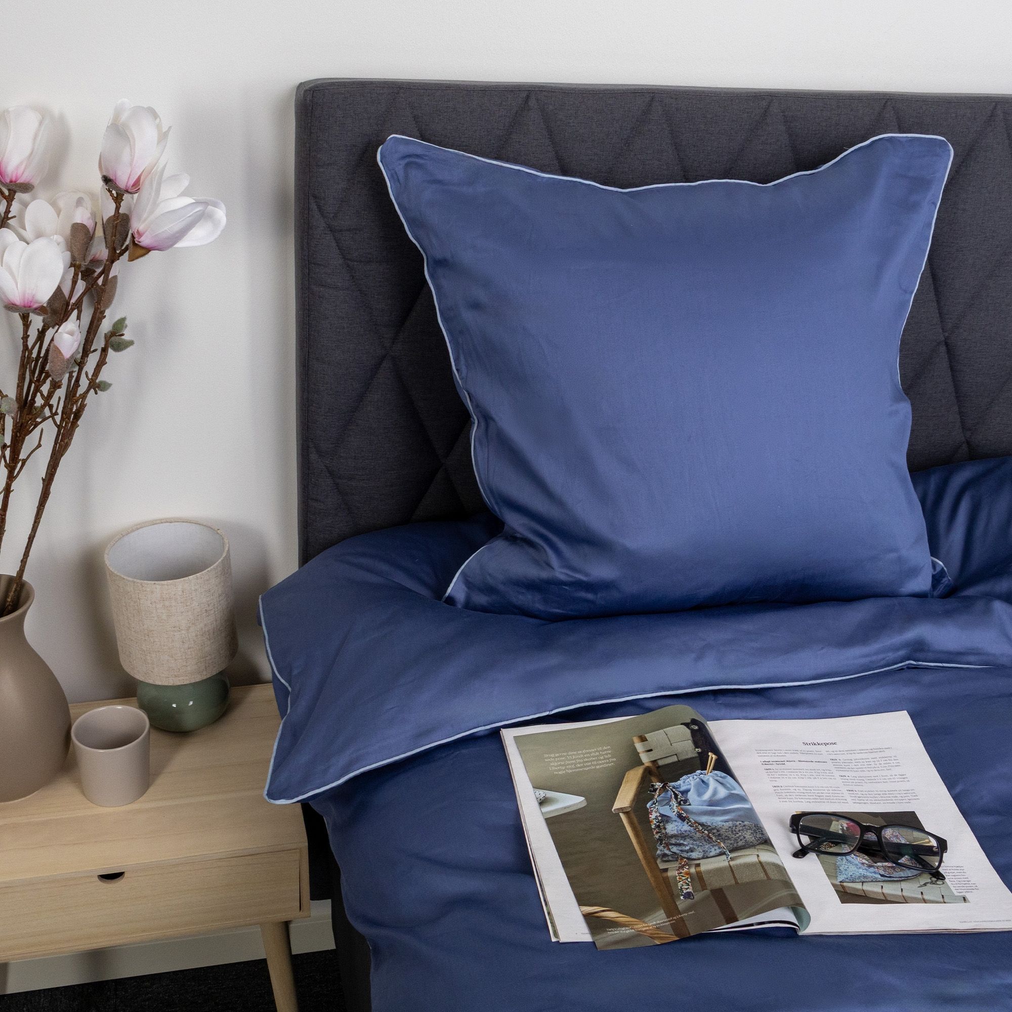 Bomuldssatin sengetøj med pipingkant til dobbeltdyner