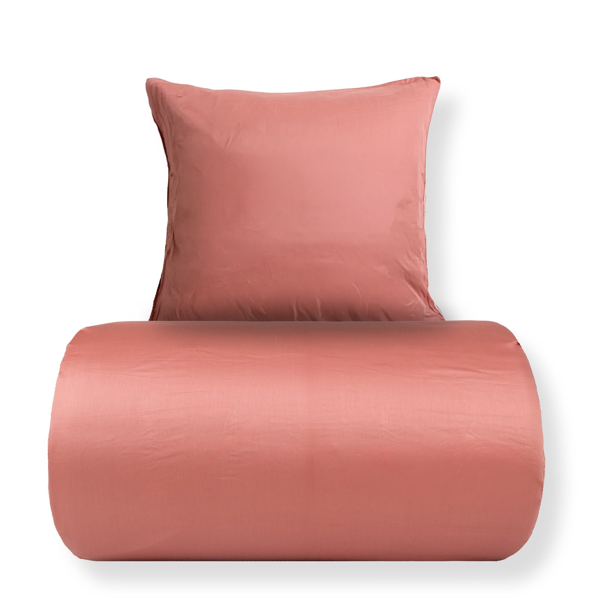 Dobbelt sengetøj 200x220 cm - 100% bomuldssatin - Rosa med lys rosa pipingkant