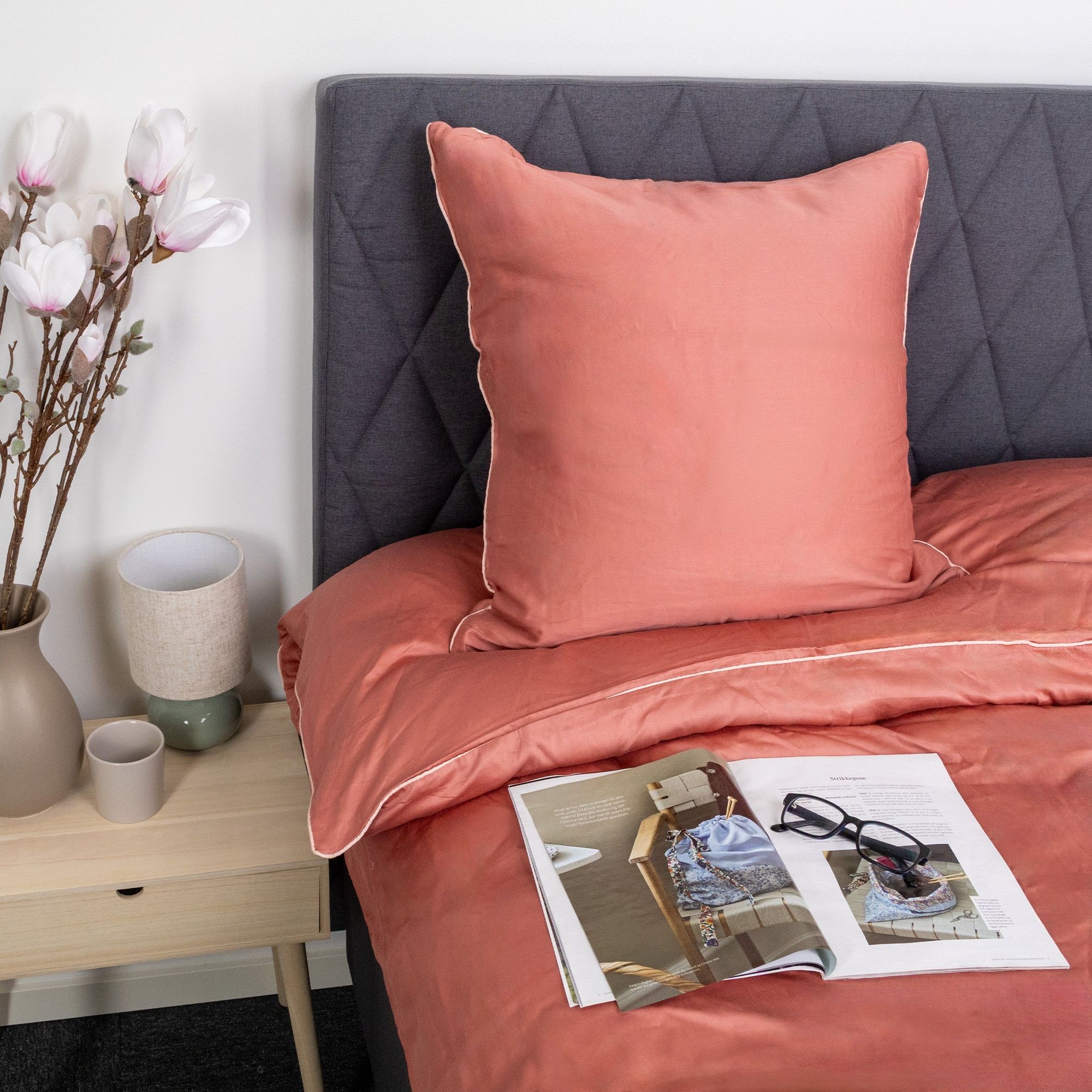 Bomuldssatin sengetøj med pipingkant til dobbeltdyner