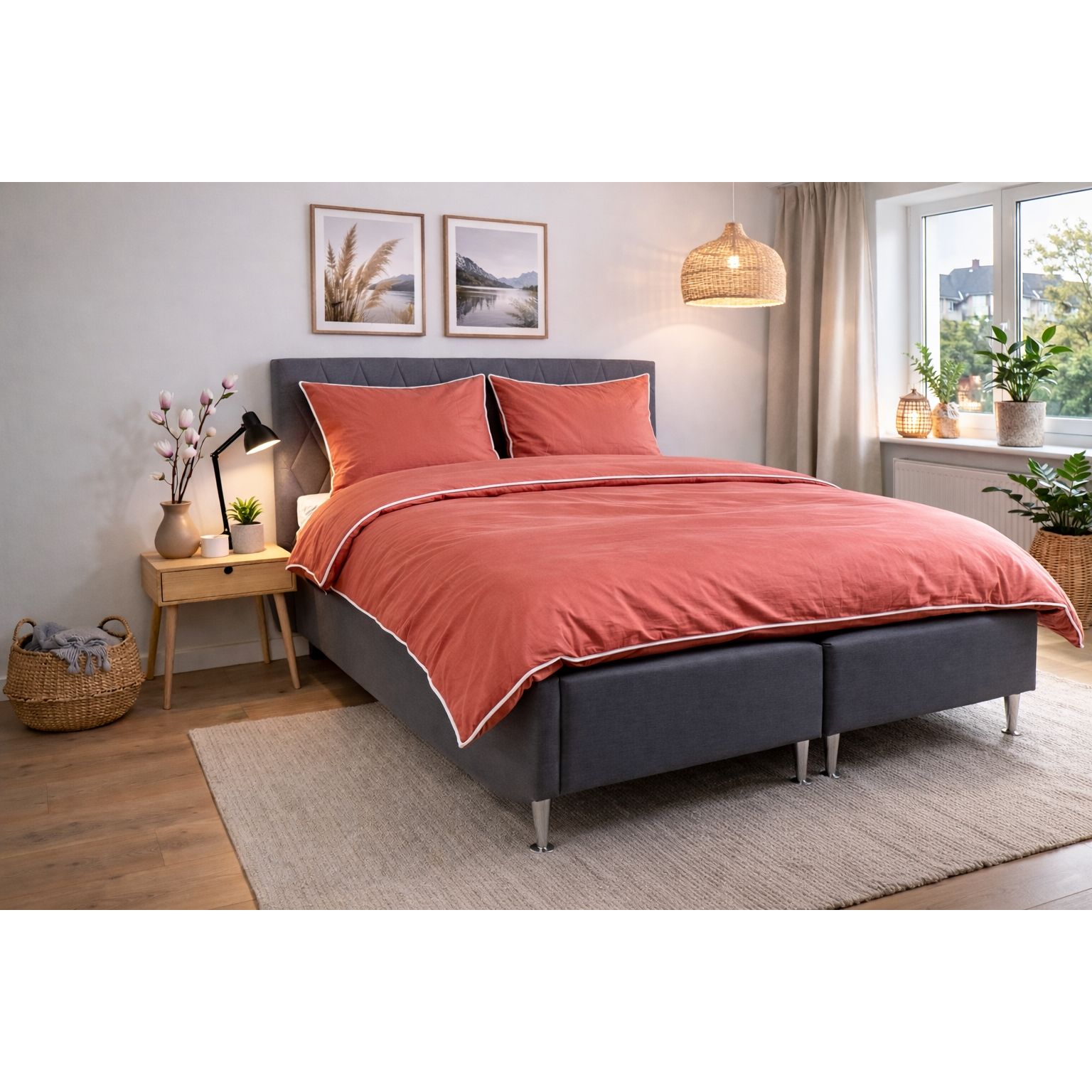 dette sengetæt til dobbeltdyner har en høj farve- og vaskeægthed, så både farve og pipingdetalje holder sig flot over tid. Dyne- og pudebetræk lukkes med indvendig skjult lynlås, som giver et pænt og minimalistisk udtryk og holder dynen sikkert på plads.